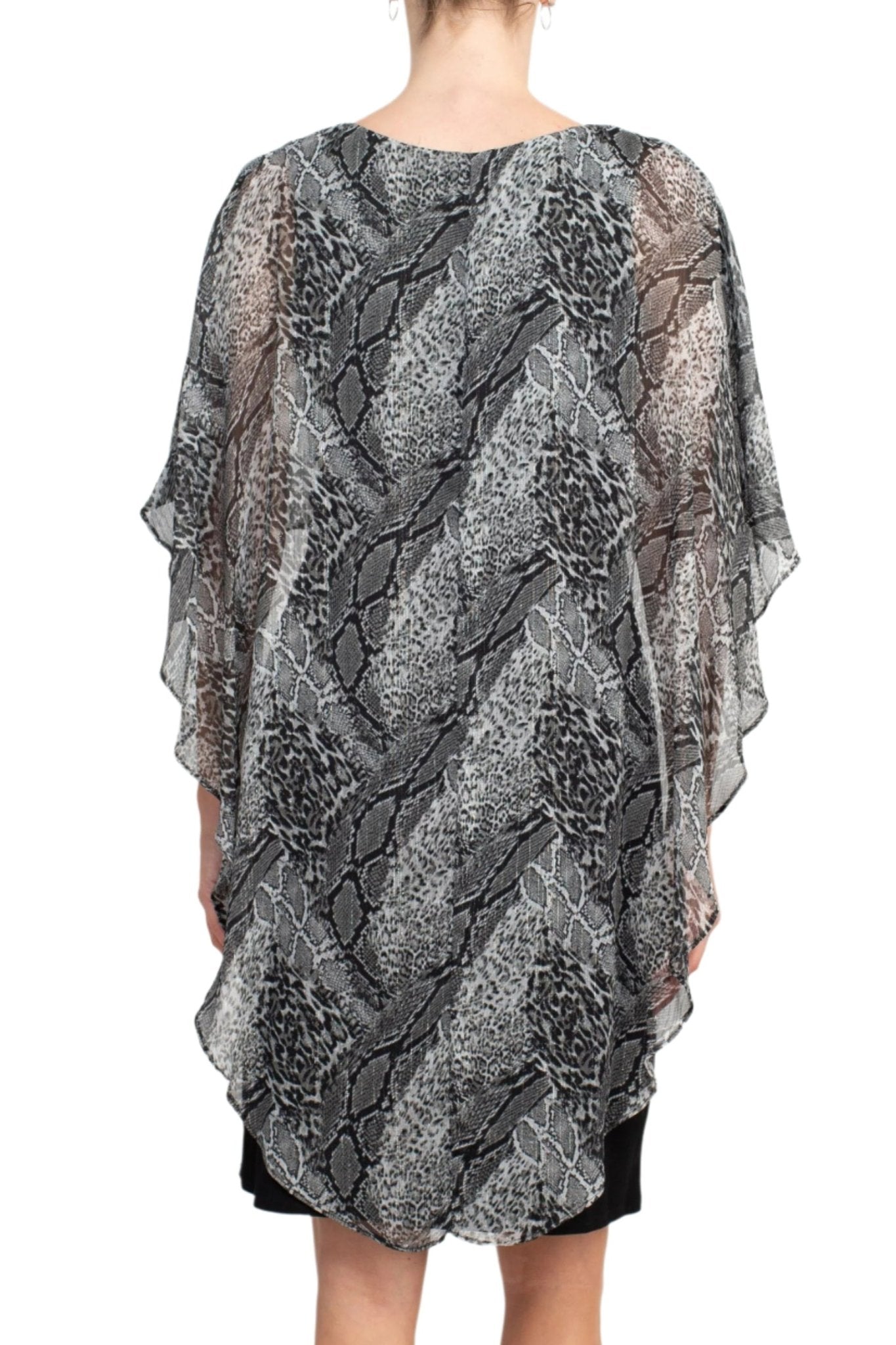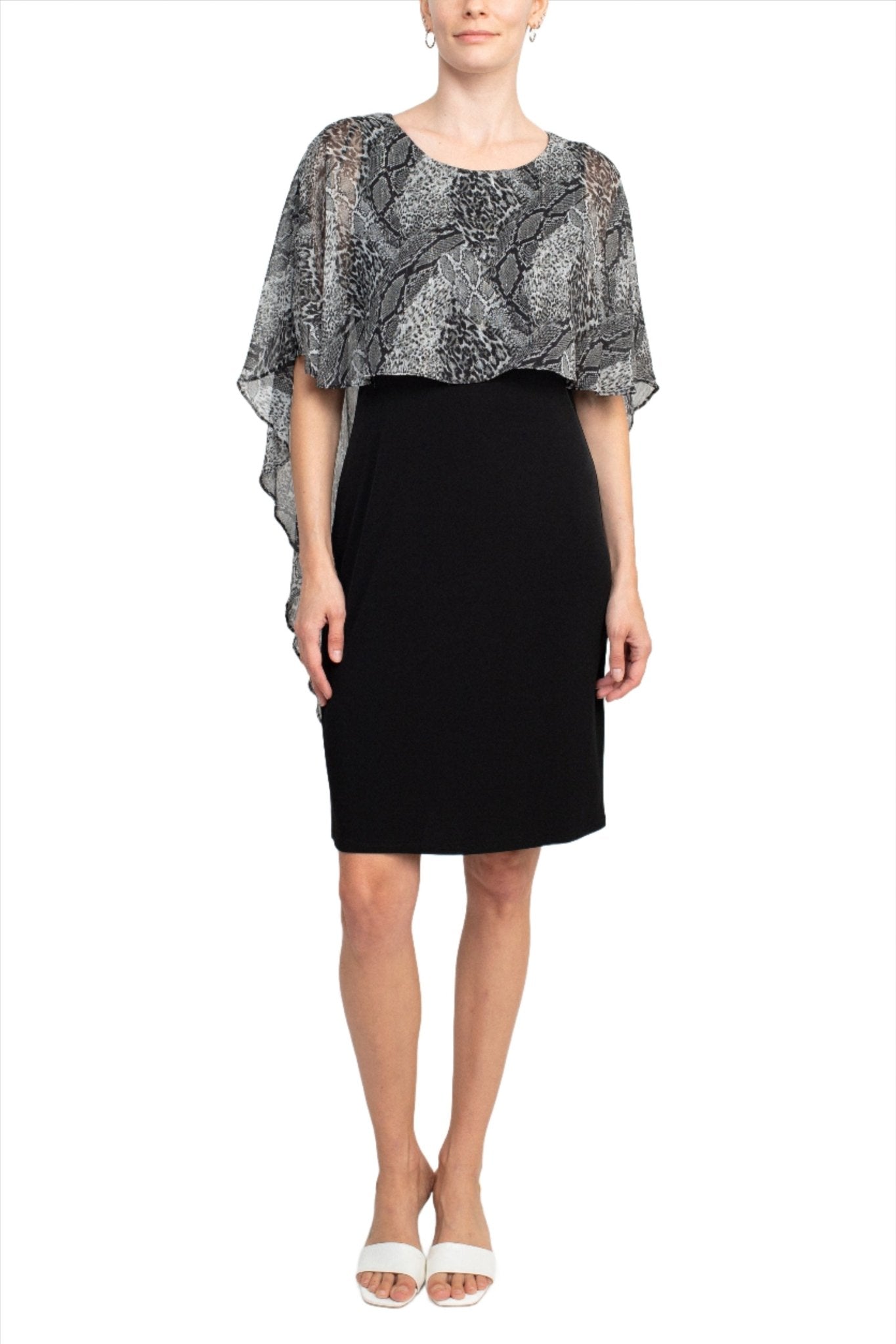 Glamour Nights Scoop Neck Animal Print Chiffon Cape Short Sleeve ITY Dress