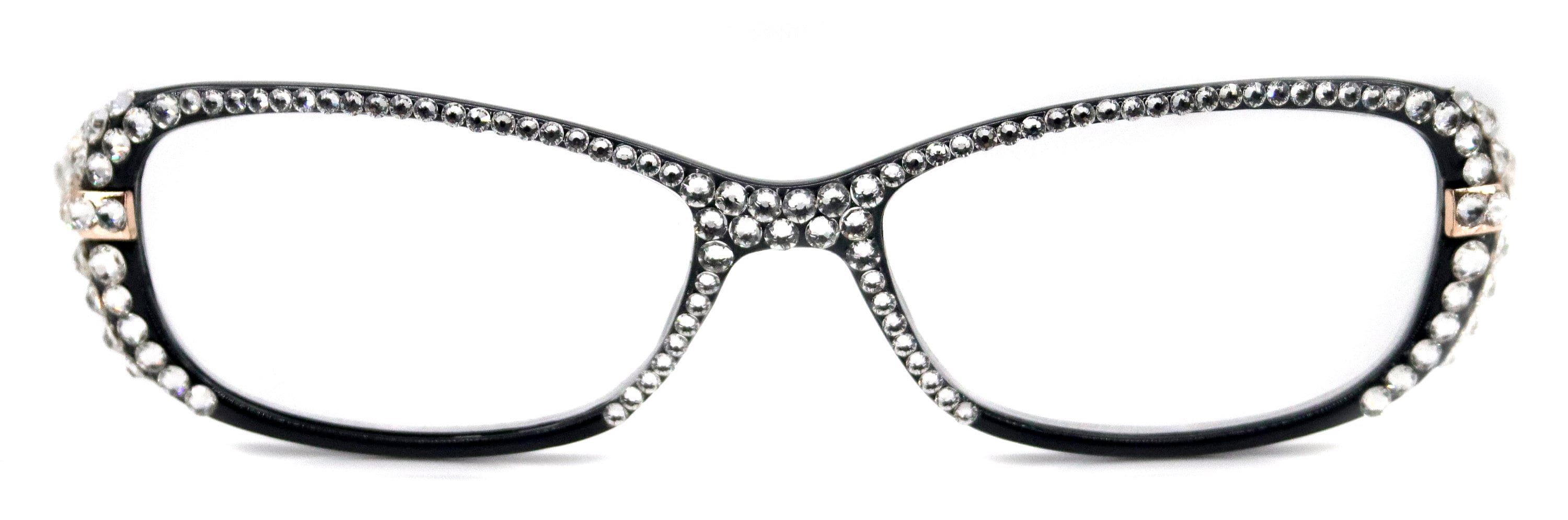 Glamour Quilted, (Bling) Reading Glasses For Women With (Full Top) Genuine European Crystals+1.25 to +3 (White, Black) NY fifth avenue.