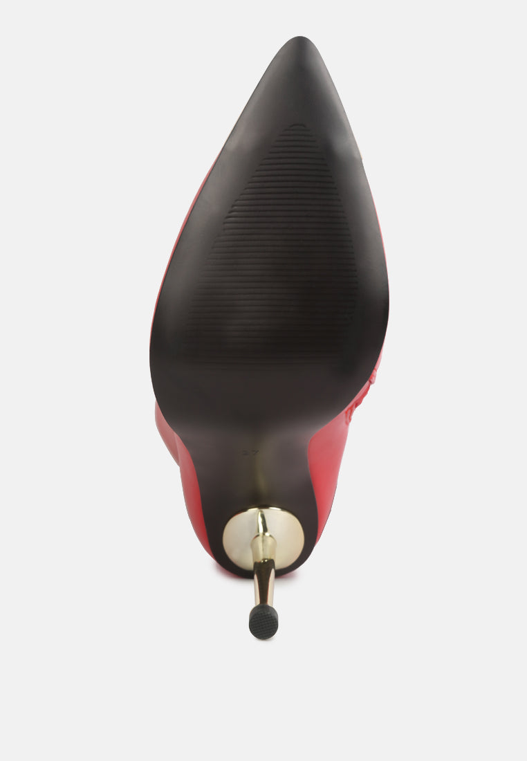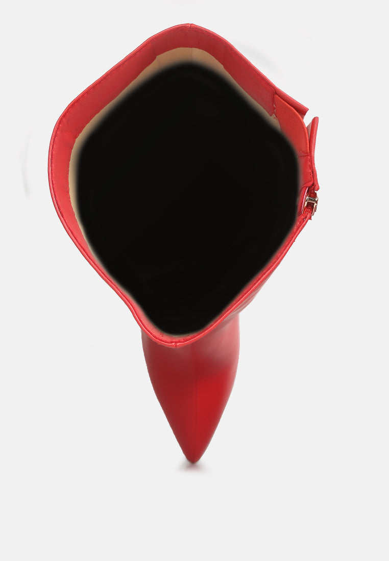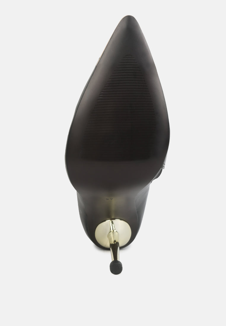 The knee-high boots are sleek and absolutely beautiful with the stiletto heels and metal lining pointed toe which also, compliments the metallic pointed high heel. Turn heads in style with these easy-to-wear winter boots which come with a side zipper opening.