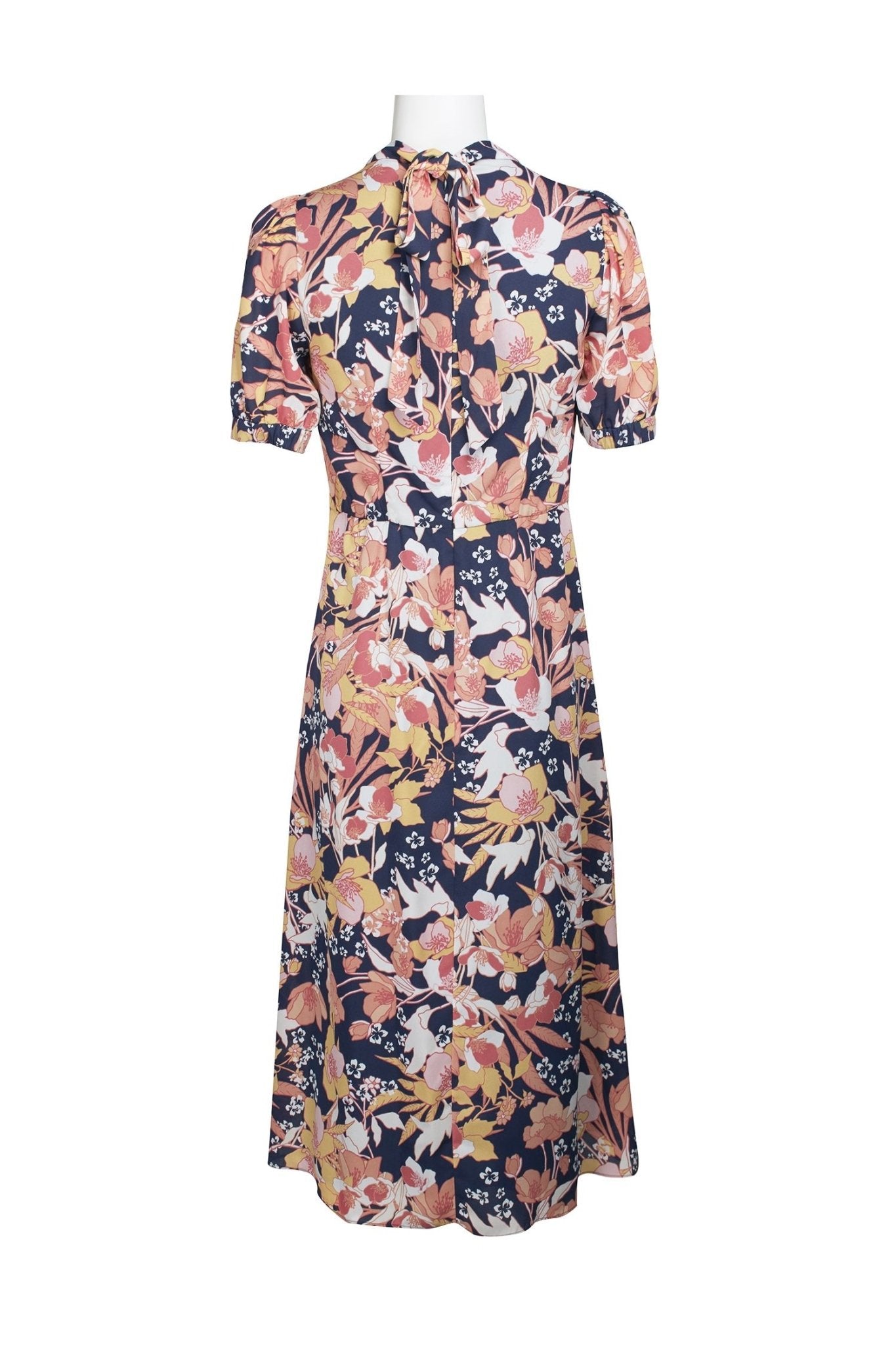 Julia Jordan High Neck Zipper Back Slit Side Floral Print Polyester Dress