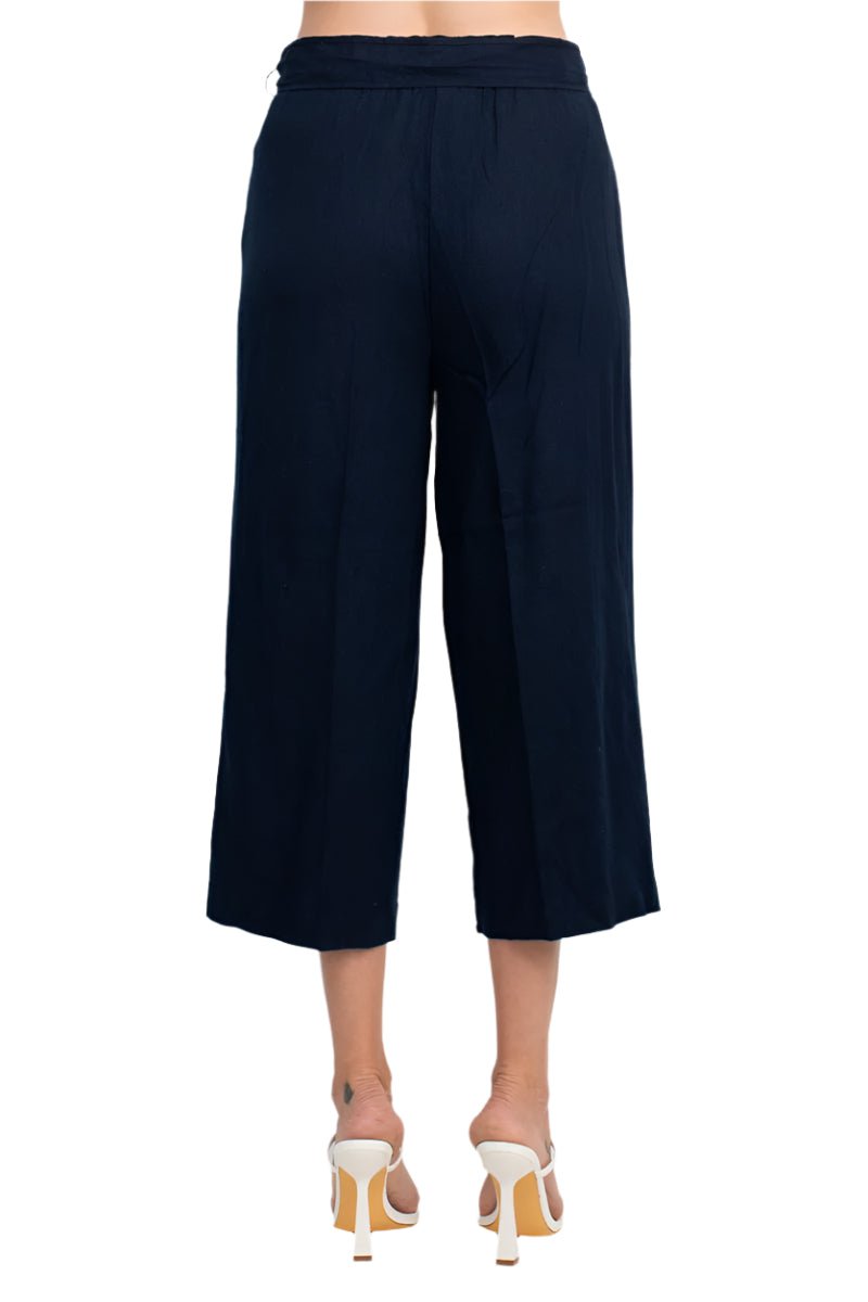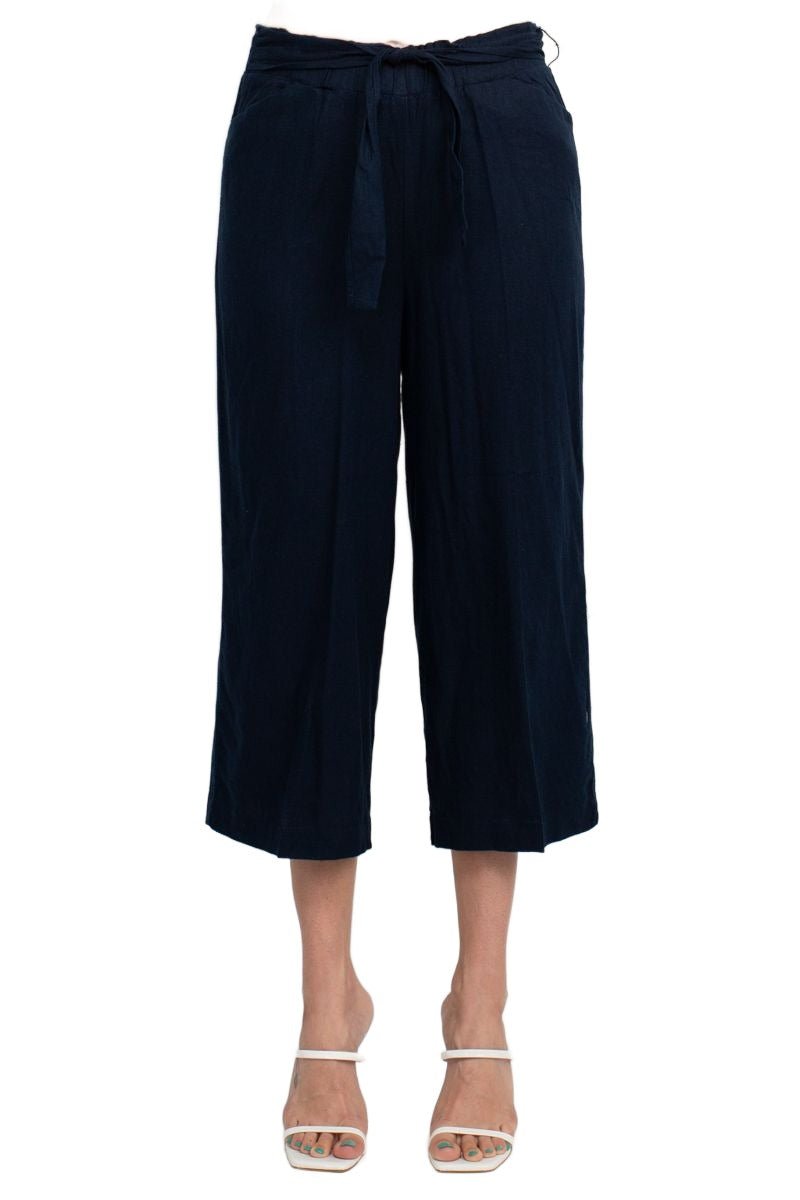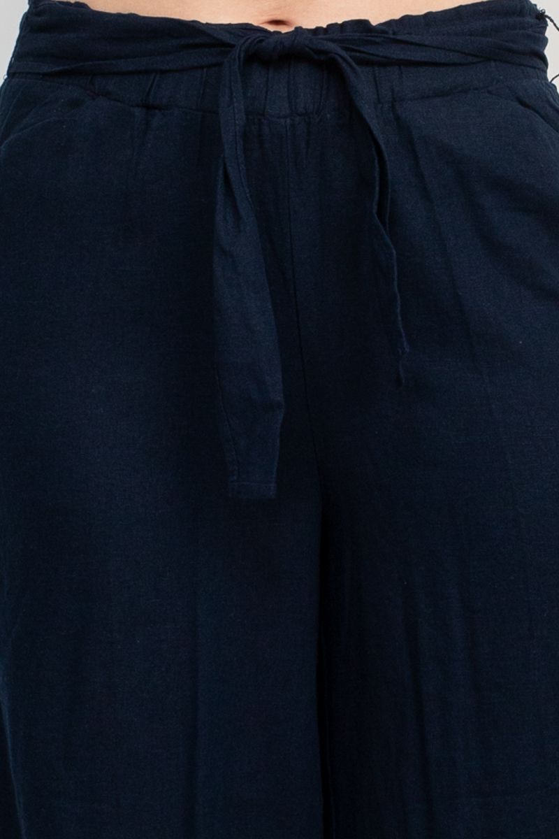 Land N Sea Elastic Mid Waist Tie Waist Wide Leg Linen Pant with Pockets
