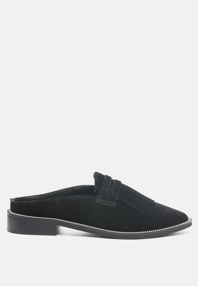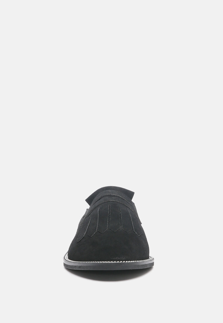The Suave Black mule in genuine suede is an ideal addition to your 9 to 5 and beyond look. A very comfortable pick with smooth leather construction, gilded insole with support, and gripping German sole that supports. From the day at work to an evening walk by the home, be comfortable and at ease with this pair of genuine leather Mule. Soothes tired feet and is all delight with the premium handmade aesthetic.