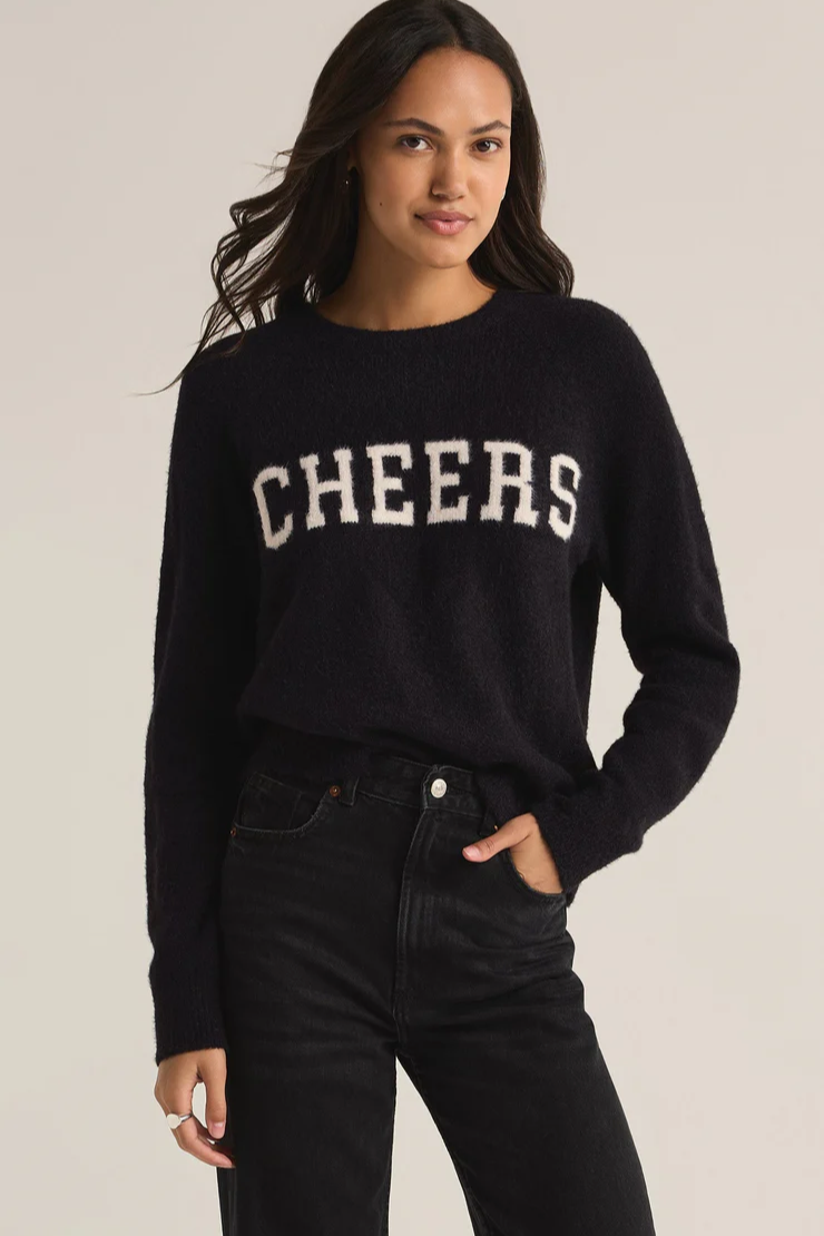 Add a touch of whimsy to your look with this lightweight sweater, made from the softest sweater yarns and featuring an intarsia "cheers" graphic. The crew neck and long sleeves make it a cozy, yet playful piece for your wardrobe. Regular fit Sweater Yarns: 52% Nylon, 34% Acrylic, 12% Polyester, 2% Spandex Crew neck Long sleeve Intarsia Graphic Hand Wash Cold Separately, Reshape &Lay Flat to Dry or Dry Clean