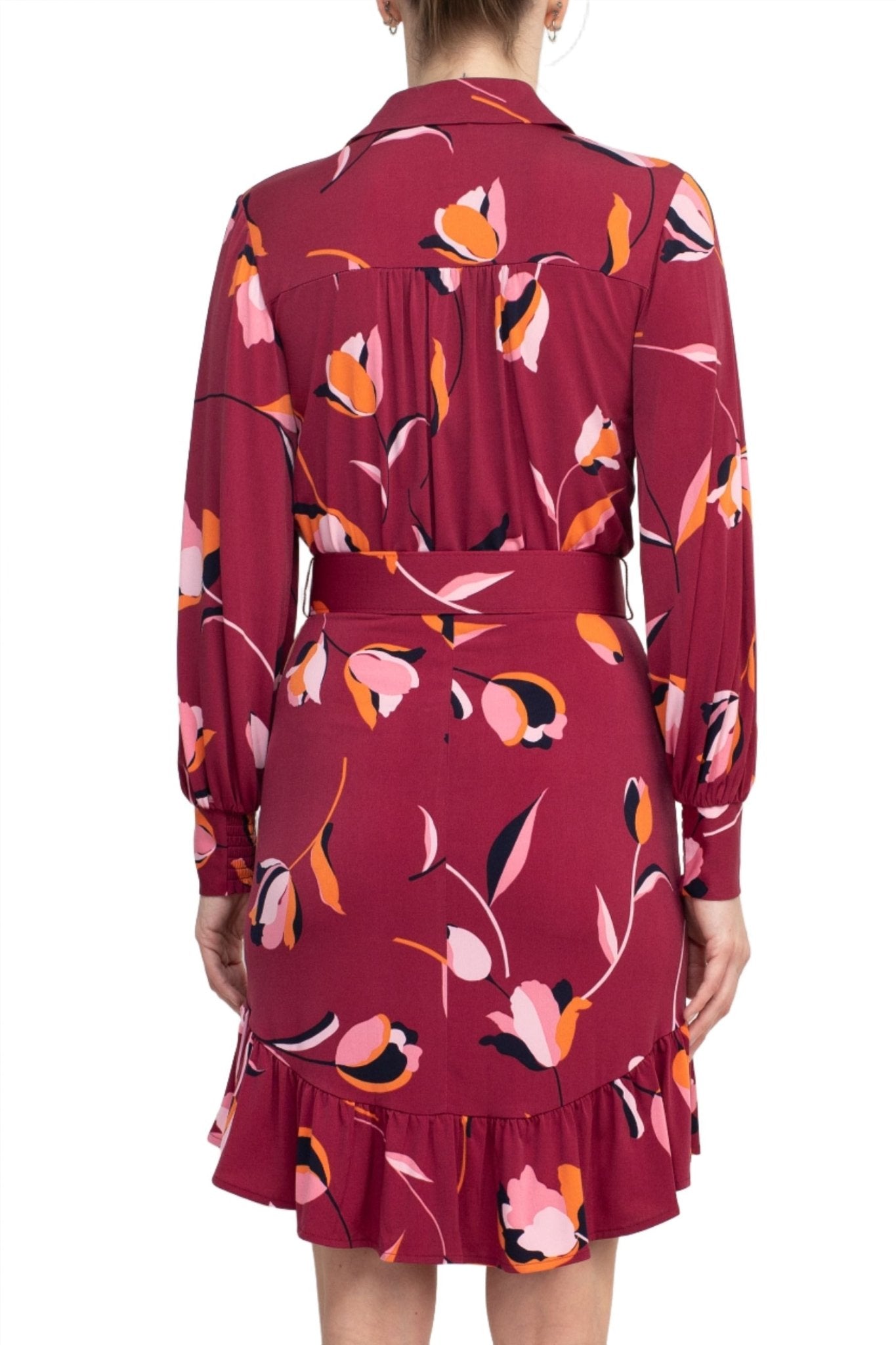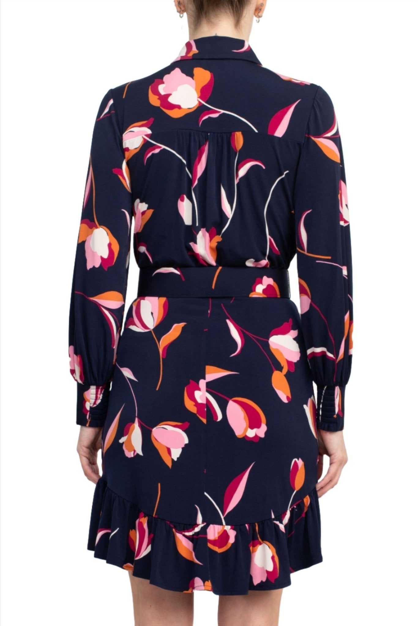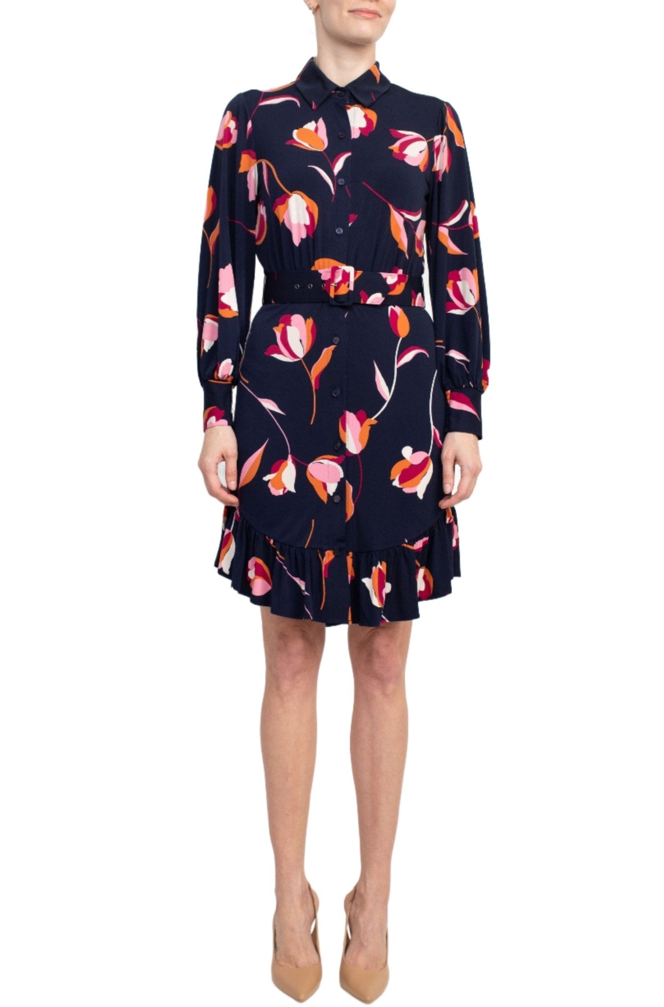 London Times Collared Button Down Elastic Cuff Long Sleeve Belted ITY Dress