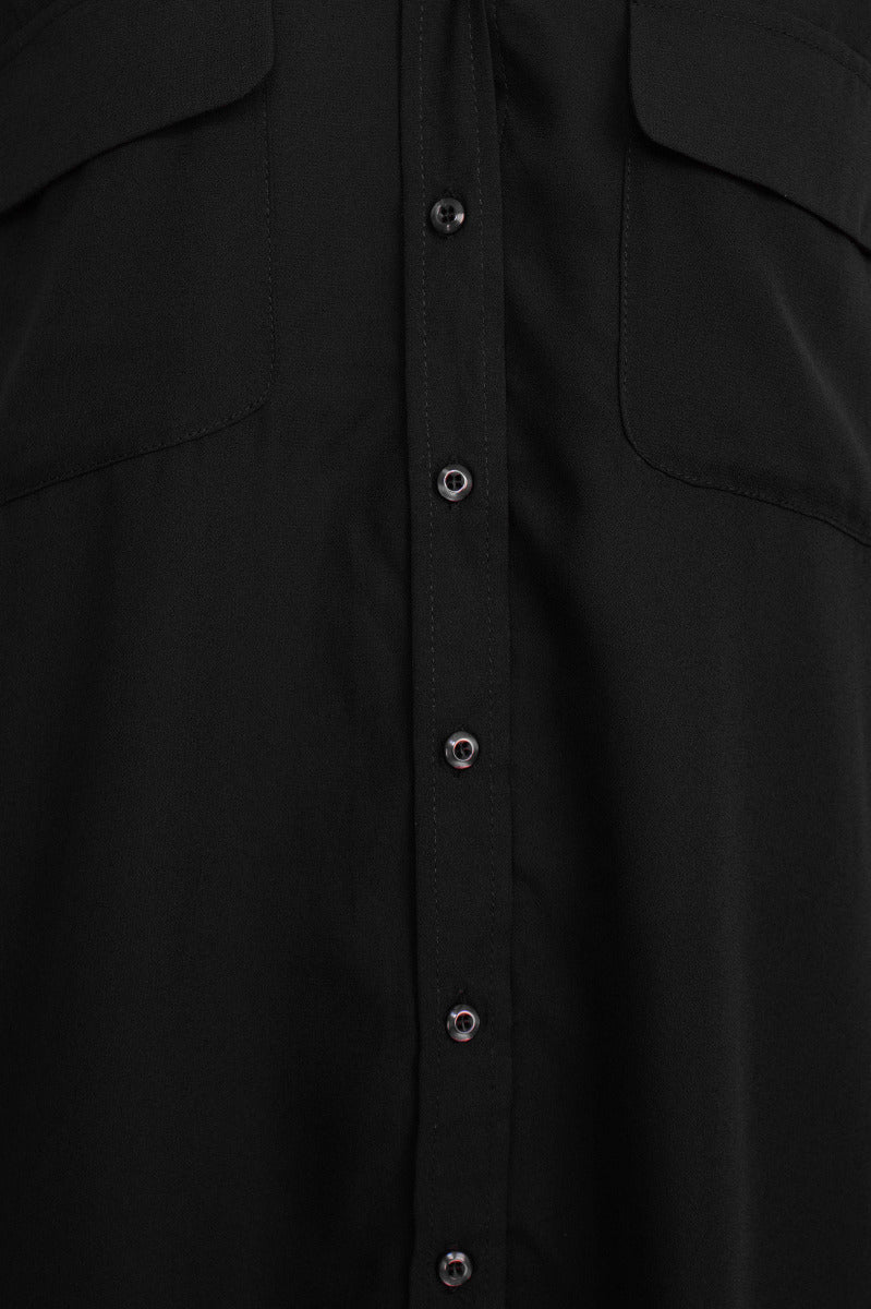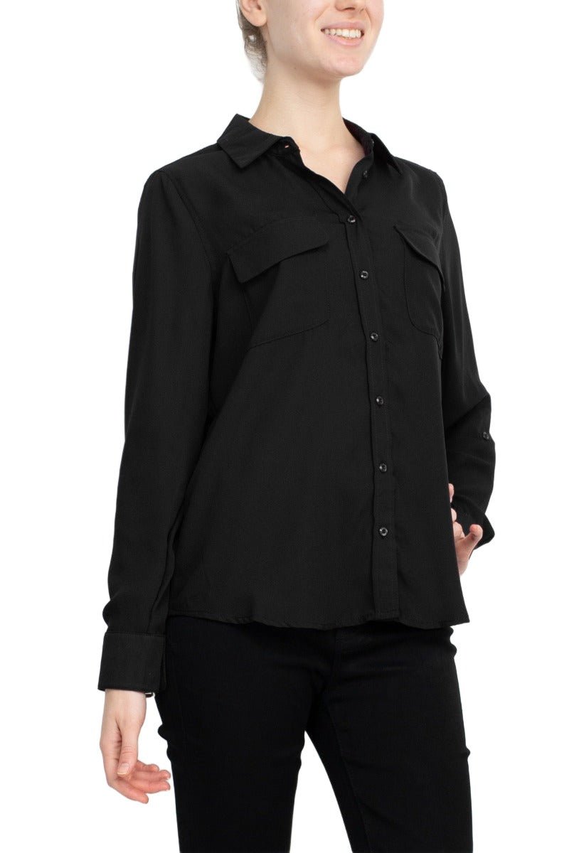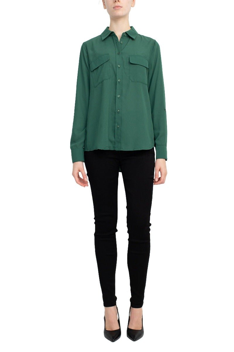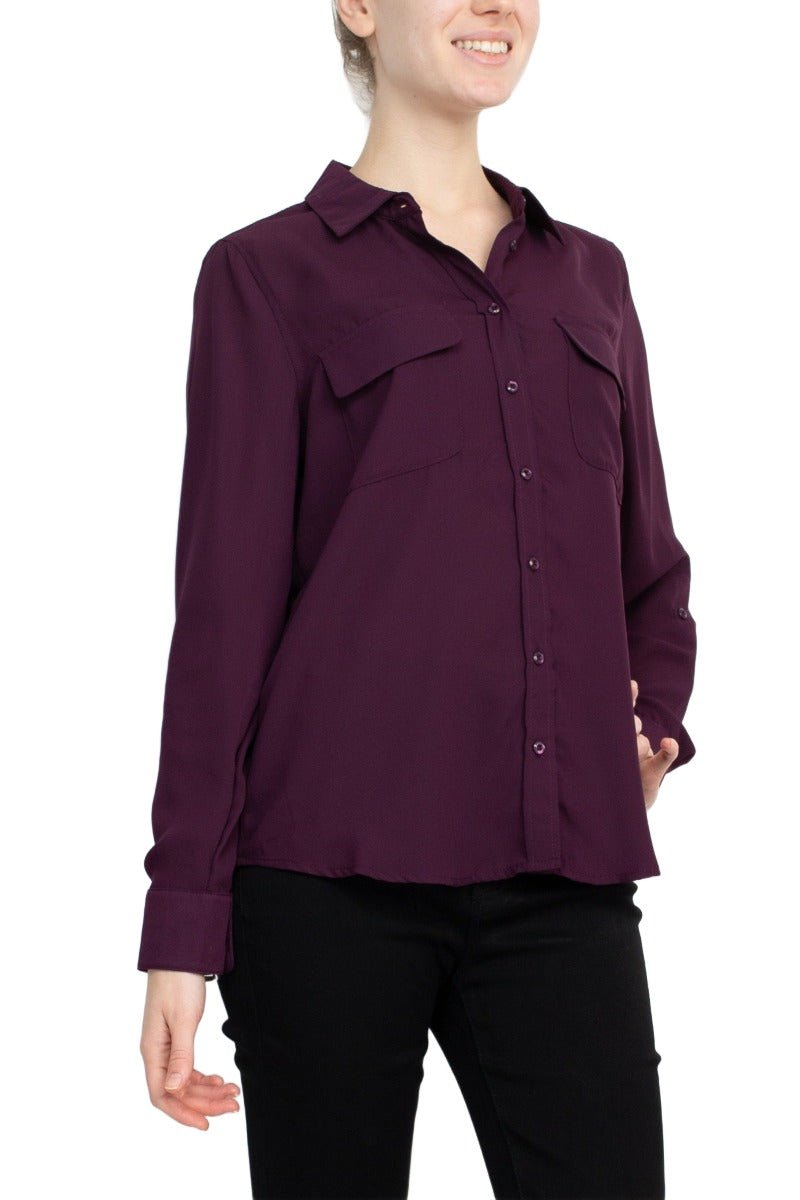 Crafted from lightweight crepe (100% Polyester), it offers a soft drape and tailored finish. The collared neckline and front button detailing provide a crisp, classic look, while dual chest pockets add a modern utility touch. Long sleeves give you graceful coverage that transitions seamlessly between settings, and the machine-washable fabric makes this an easy-care option for your on-the-go lifestyle.