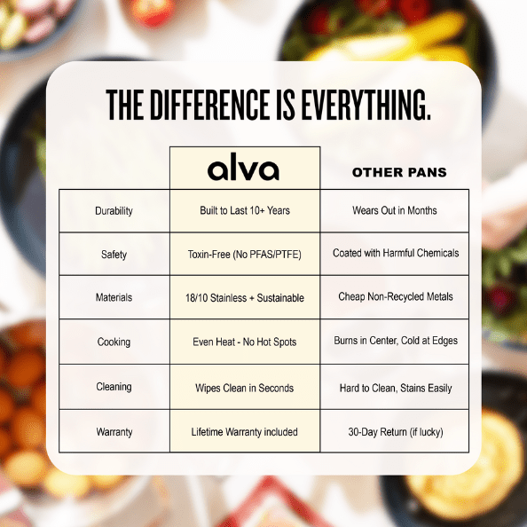 Designed for effortless, healthy cooking. Maestro delivers pro-level searing with the ease of true nonstick — no toxins, no fuss. Three stainless layers heat fast and evenly; our interior wipes clean and lasts for years.