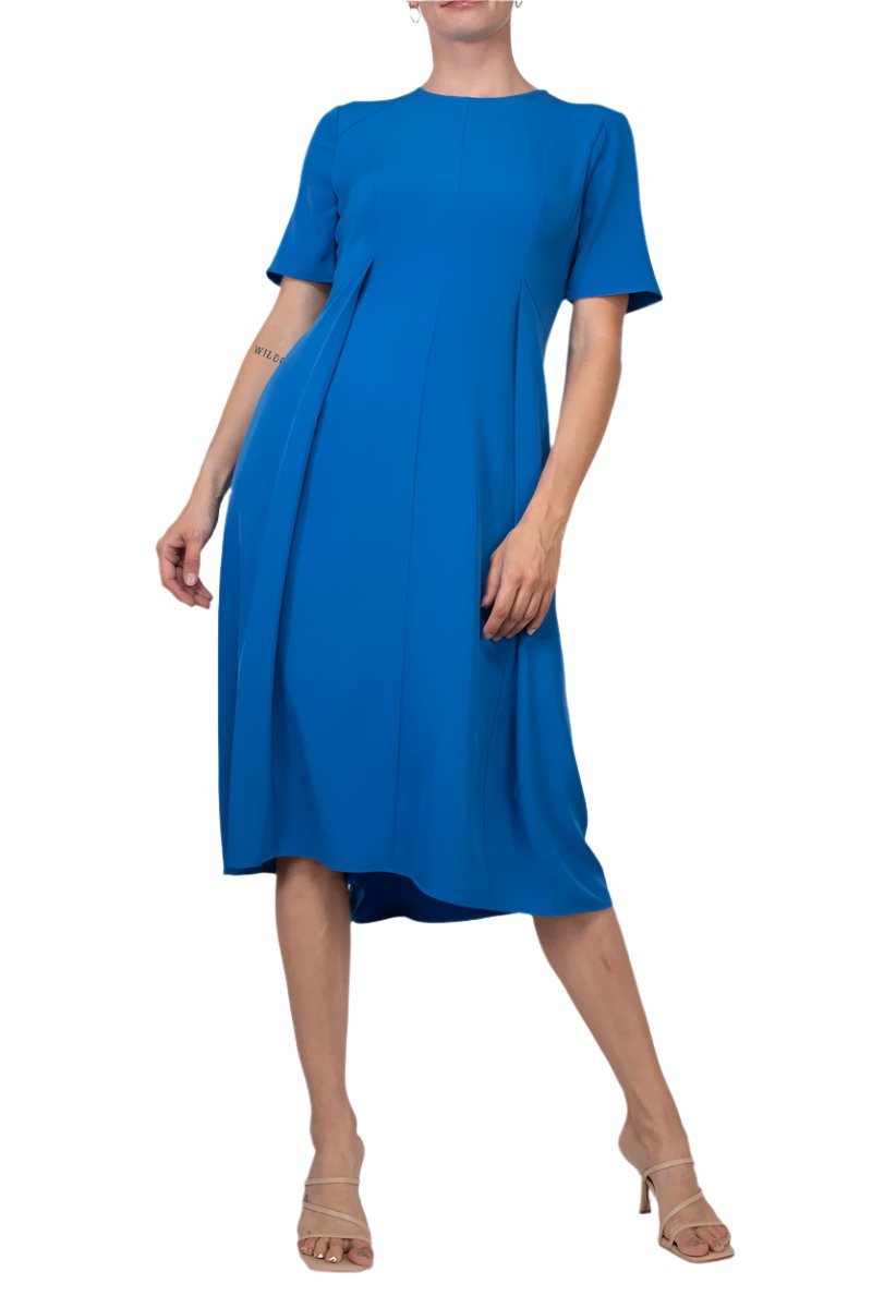 Maggy London Crew Neck Short Sleeve Pleated Solid Zipper Back Scuba Dress