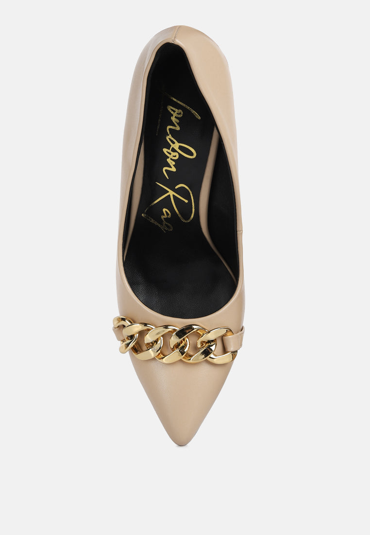 Looking to take your footwear fashion game a notch higher? The block heel pumps are an epitome of beauty and comfort combined, thanks to the metal chain detailing on the front and a soft cushion insole for the feet. Rock the high-heeled pumps in your office or after work without compromising on glam.