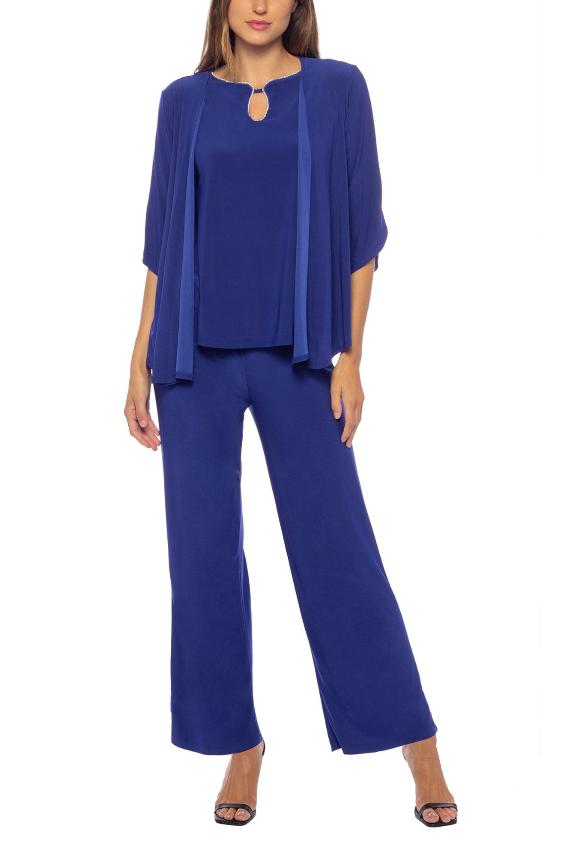 Marina Rhinestone Keyhole Neckline Sleeveless Top with Jacket and Pants