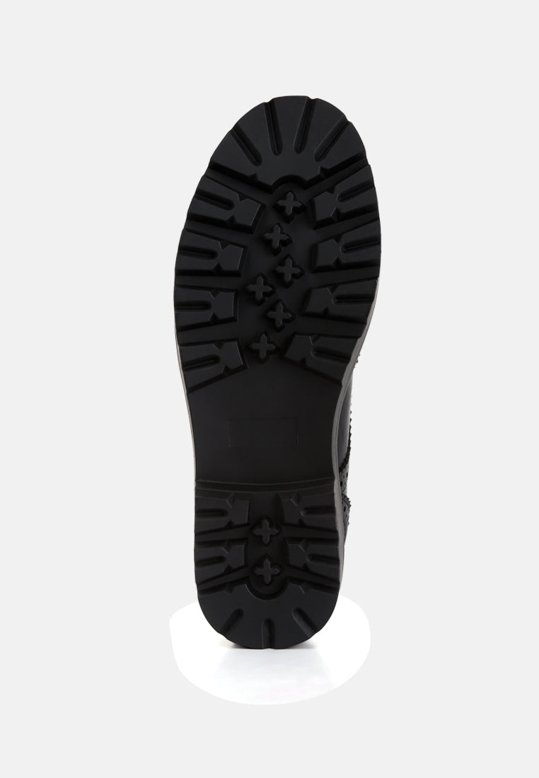 Edgy with a vintage vibe, the derby shoes are the perfect blend of a classic design with a trendy touch of lug soles. The derby shoes give a smart and sharp look with perforated detailing that elevates the visual aesthetic of the shoes.