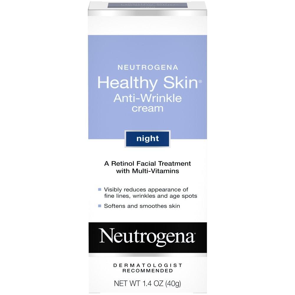 Neutrogena Healthy Skin Anti Wrinkle Retinol Cream with Vitamin E and Vitamin B5 - Night Moisturizer with Retinol, Vitamin E, Vitamin B5, Glycerin, 1.4 oz. 1.4-ounce tube of anti-wrinkle moisturizing night face cream with powerful retinol for healthier, younger-looking skin. Formula with retinol, an anti-wrinkle ingredient and pure form of Vitamin A, works deep within the skin's surface to reduce the look of fine lines, wrinkles, and age spots. Night cream contains Pro-Vitamin B5, Vitamin E, and special moisturizers is clinically proven to help soften and smooth skin. Oil-free formula absorbs quickly into skin and is non-comedogenic; it won't clog pores, which can cause breakouts.