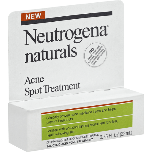 Naturals Acne Spot Treatment to treat and help prevent breakouts. This clinically proven acne medicine is formulated with wintergreen, a source of naturally derived salicylic acid, that treats and helps prevent acne and blackheads. The non-comedogenic formula penetrates down into pores to powerfully treat acne without clogging pores. NEUTROGENA. ®. Naturals Acne Spot Treatment is 93% naturally derived for clear, healthy-looking skin.