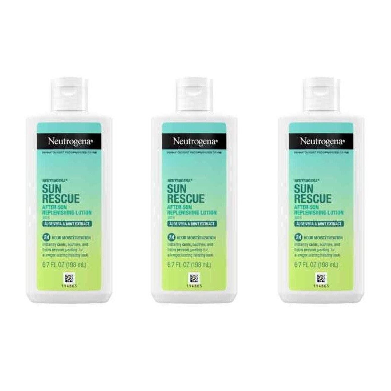 Revive and replenish skin after a day in the sun with Neutrogena Sun Rescue After Sun Replenishing Lotion. This after sun lotion from a dermatologist-recommended sun care brand provides 24-hour hydration to maintain the natural moisture balance of skin while helping to prevent peeling for healthier looking skin. Formulated with soothing aloe vera. Mint extract. And vitamin E. A known antioxidant. This rehydrating lotion is ideal for sensitive skin after sun exposure. And helps you maintain a longer lasting healthy look.