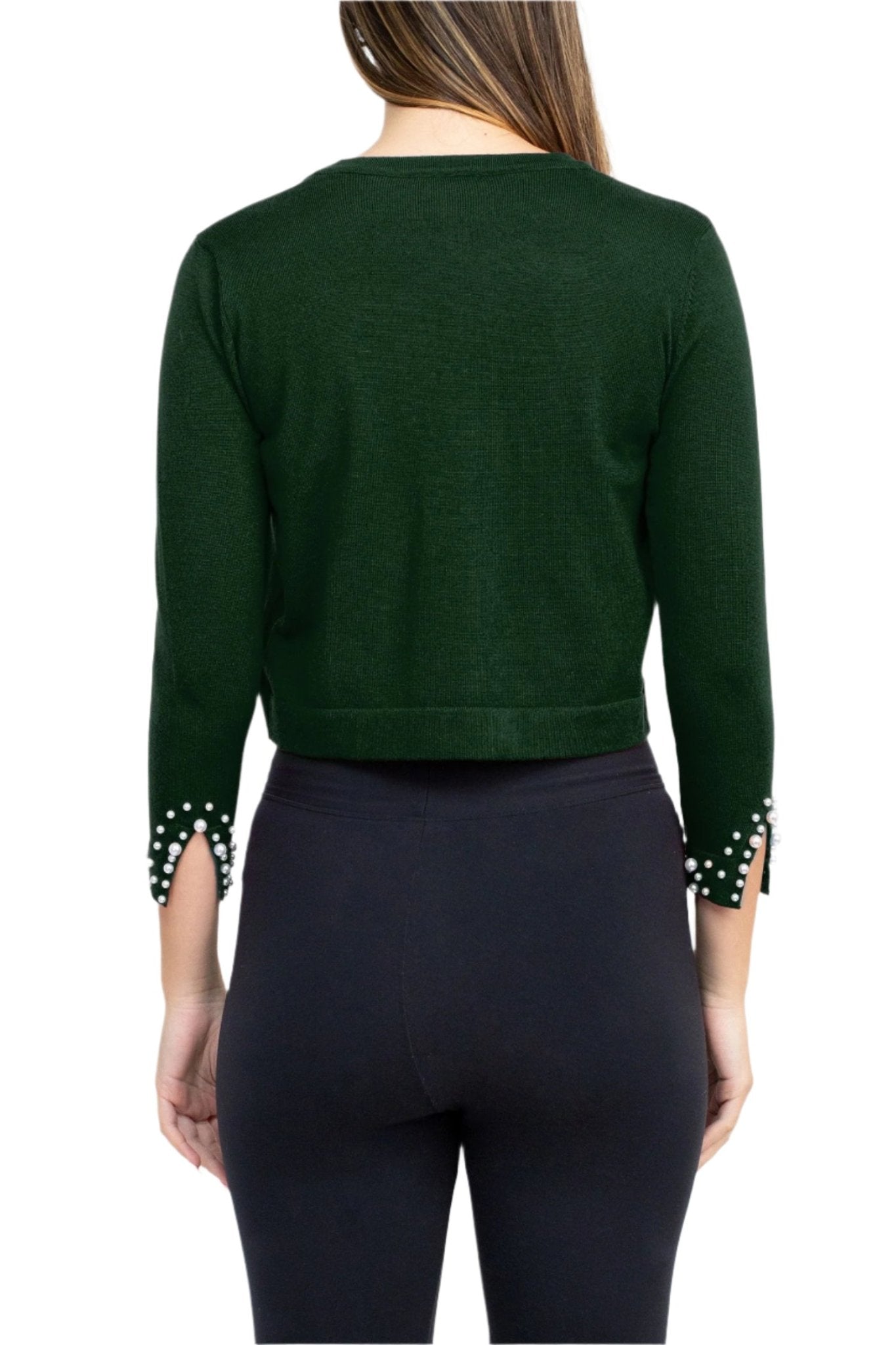 Why Choose the Nina Leonard Embellished Cuff Knit Bolero?
