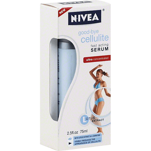Tone and correct with Nivea Skin Firming Cellulite Serum. This special treatment product helps visibly reduce the appearance of cellulite in as little as 10 days. Nivea coenzyme Q10 serum is enriched with natural lotus extract and L-Carnitine to smooth, tone and treat the skin, minimizing cellulite in targeted areas. For best results, combine with Nivea Skin Firming Hydration Body Lotion and use daily. Each bottle contains 2.5 oz of skin smoothing serum; additional Nivea products are sold separately.