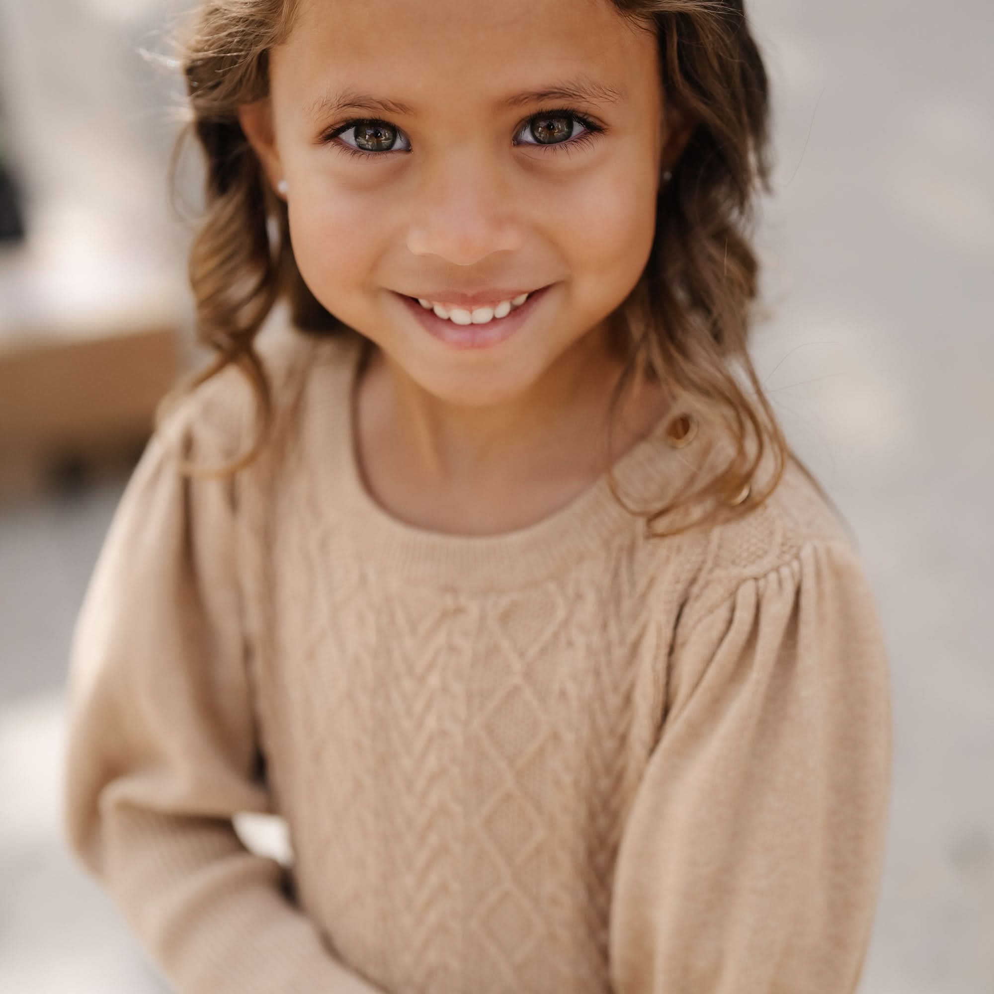 Meet one of our newest fall obsessions for girl - this perfectly put-together dressy sweater dress in soft organic cotton. Features beautiful leg of mutton sleeves, cable knit on the front and back bodice, a small waist bow, and gold buttons at the shoulder placket for easy dressing. An absolutely darling look she's sure to love.