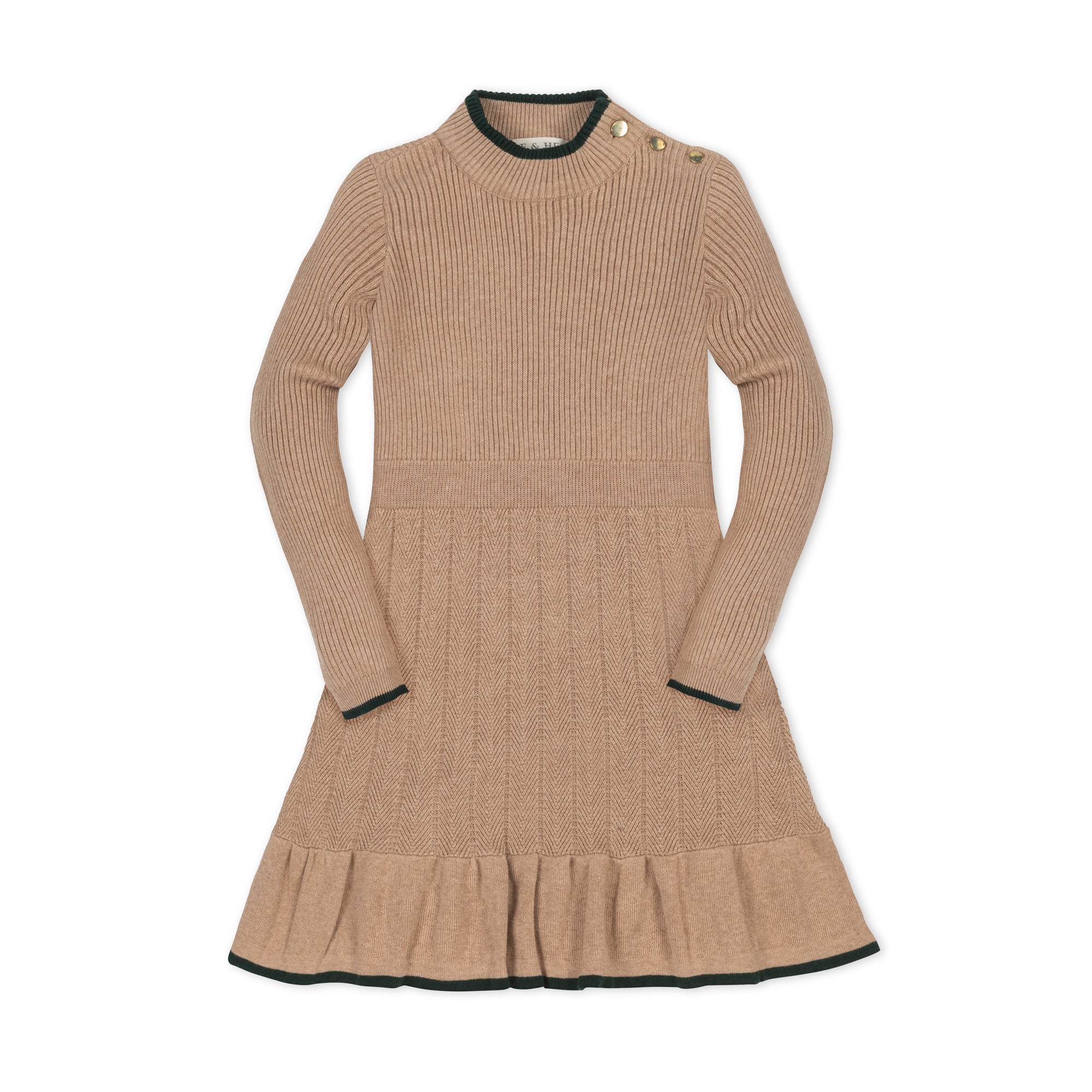 This adorable piece combines the polish of a dress with the comfort of her favorite sweater (aka the best of both worlds). Features a cozy mock neck, fun flounce at the bottom hem, and a textured stitch at the bodice and sleeves. A special piece in soft organic cotton she will treasure this season.