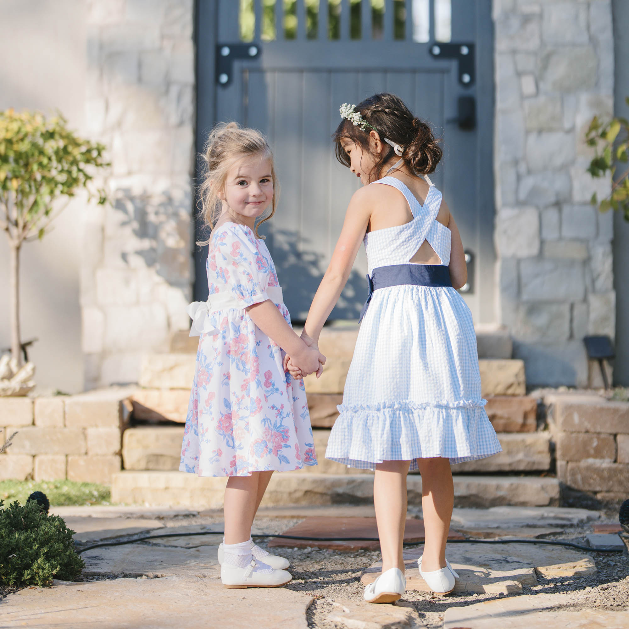 Our gorgeous puff sleeve party dress in soft organic cotton has all the incredible details that make it perfect for everything from dinner with the family to twirling on a dance floor. Features beautiful puff sleeves, waist sash with bow, and a button closure at the center back. A showstopper for special occasions.