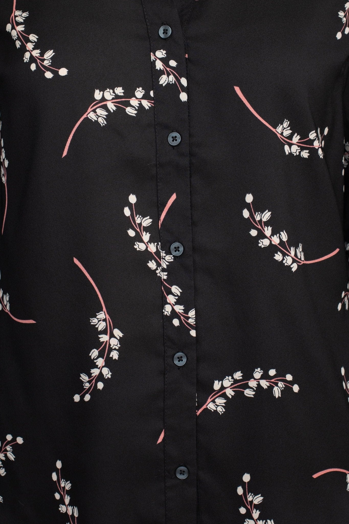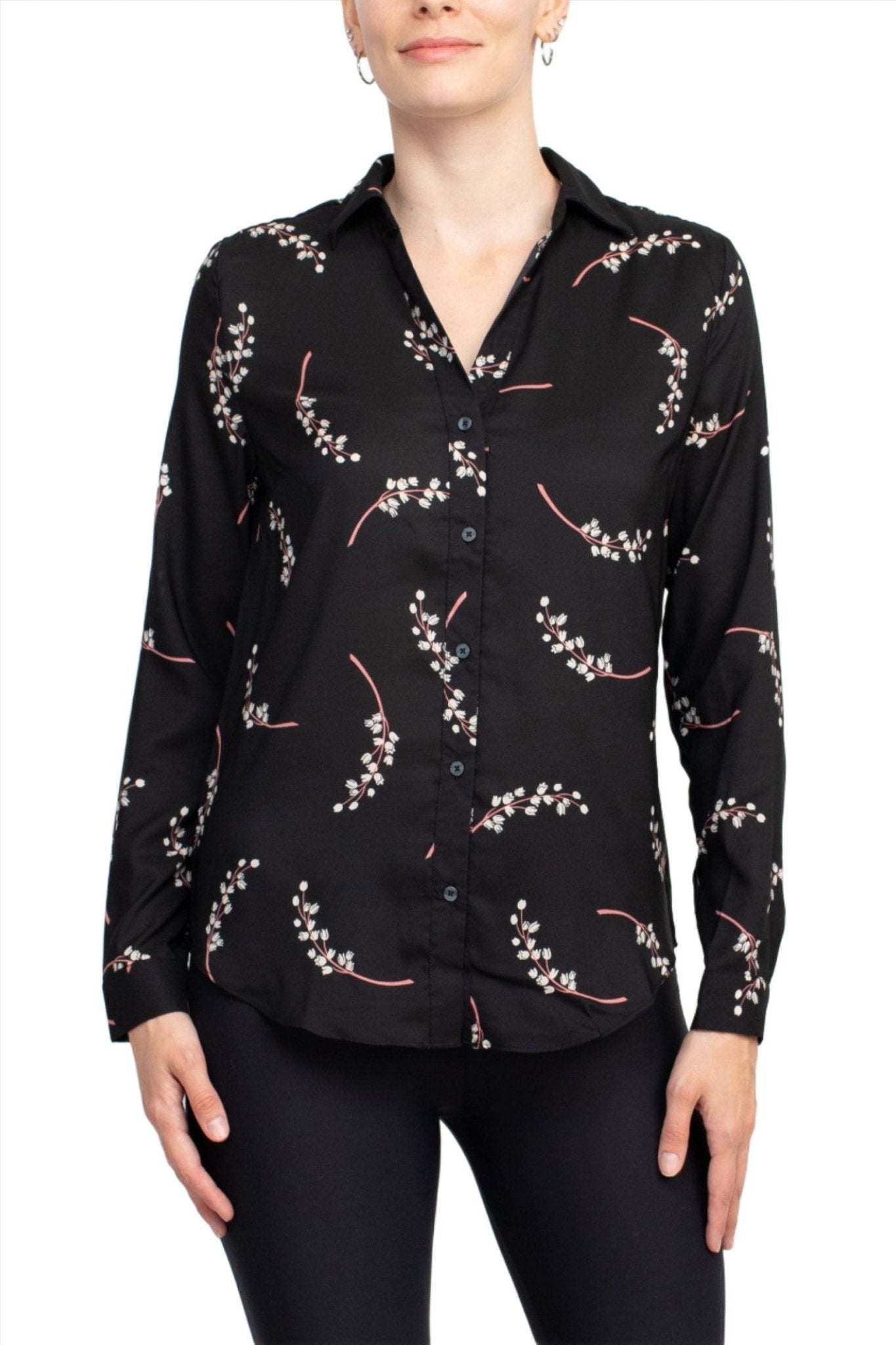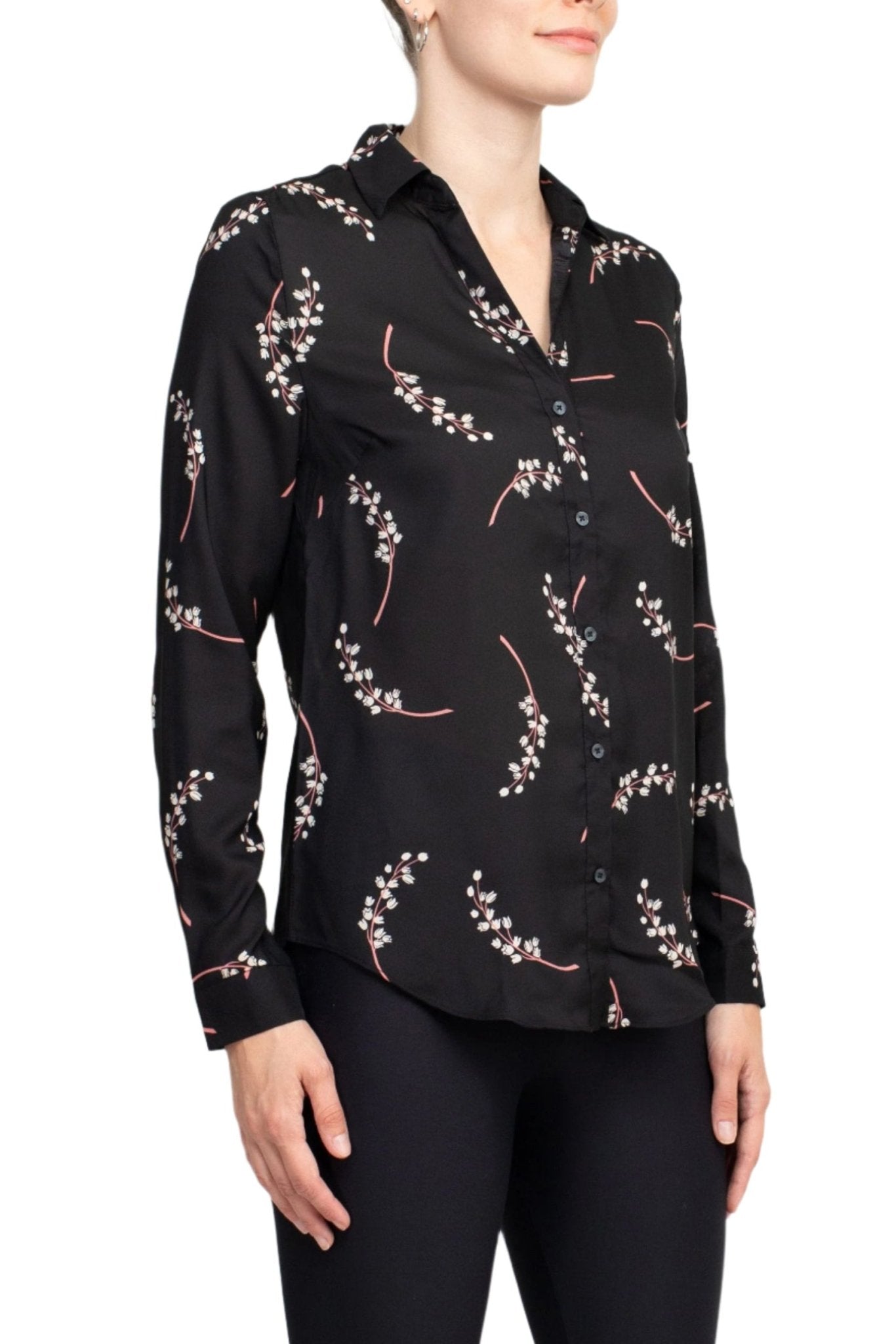Premise Collar Neck Button Detail Long Sleeve Printed Crepe Top