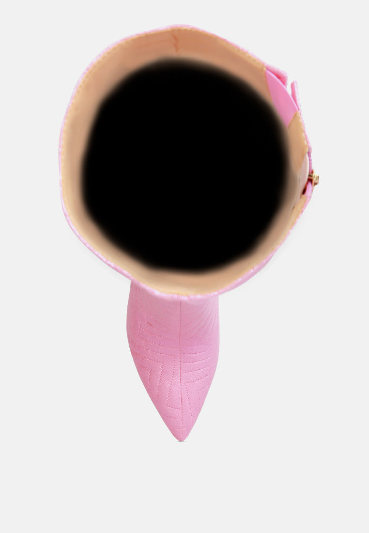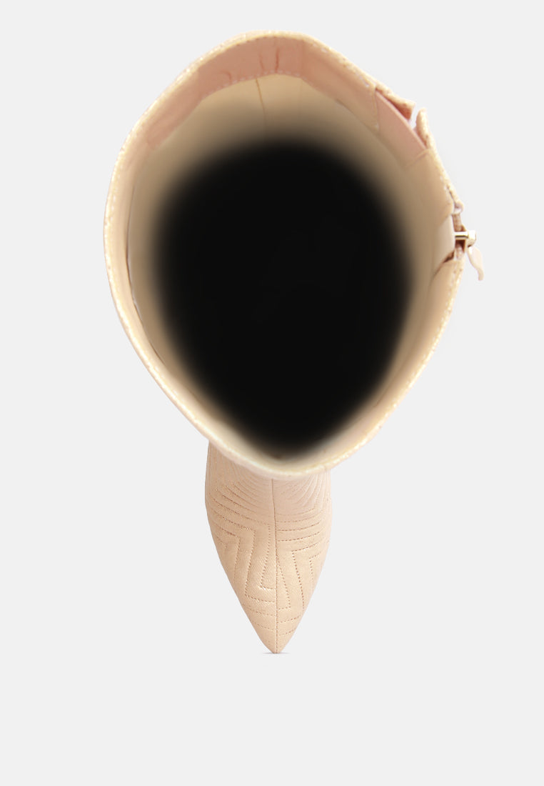 Prinkles Quilted Italian Block Heel Calf Boots are these party ready boots that can bedazzle anyone around. With chevron patterned quilting adding glamour to your wardrobe, these girls boots become a prized possession once you own them. These talk of the party high heel boots come with a side zipper opening and a lightly padded insole to make your feet comfortable and happy, dancing the night away.
