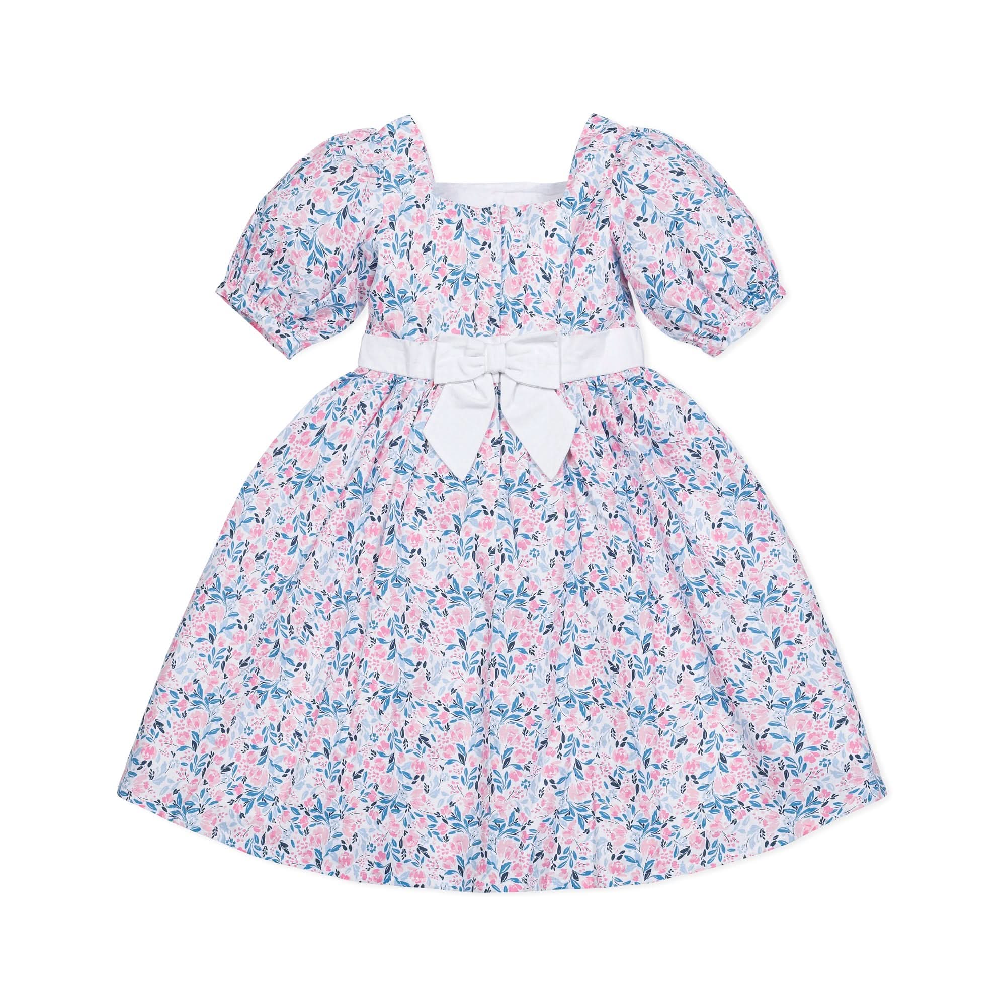 Our gorgeous puff sleeve party dress in soft organic cotton has all the incredible details that make it perfect for everything from dinner with the family to twirling on a dance floor. Features beautiful puff sleeves, waist sash with bow, and a button closure at the center back. A showstopper for spring time!