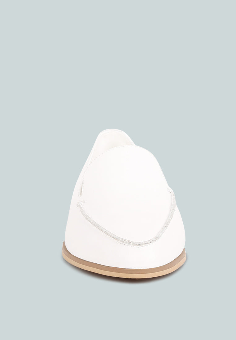 The minimalist loafers are a classic versatile style and ideal as office shoes that look elegant and chic. The metallic sling adds a bling feature that looks luxe. The loafers are comfortable to wear with soft cushion insoles.