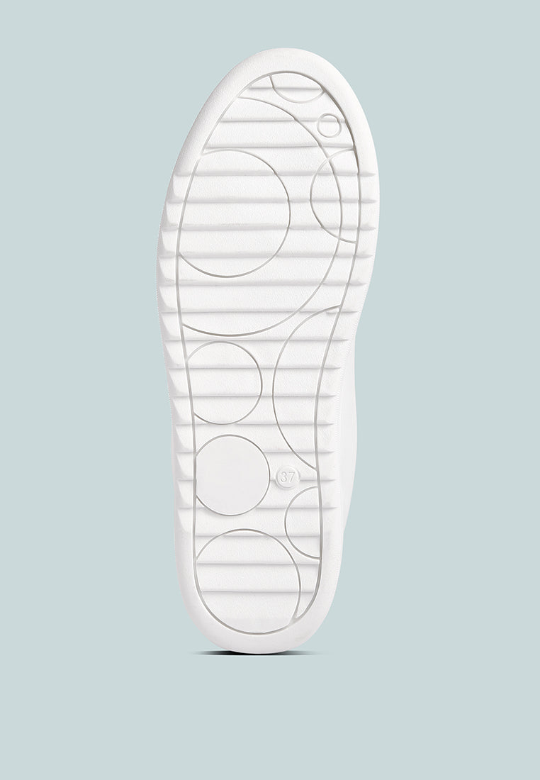 The faux leather sneakers look stylish, and bold, and have a classic design that is versatile. The chunky shoes are easy to wear with pull tabs and lightly cushioned insoles which offer comfort.