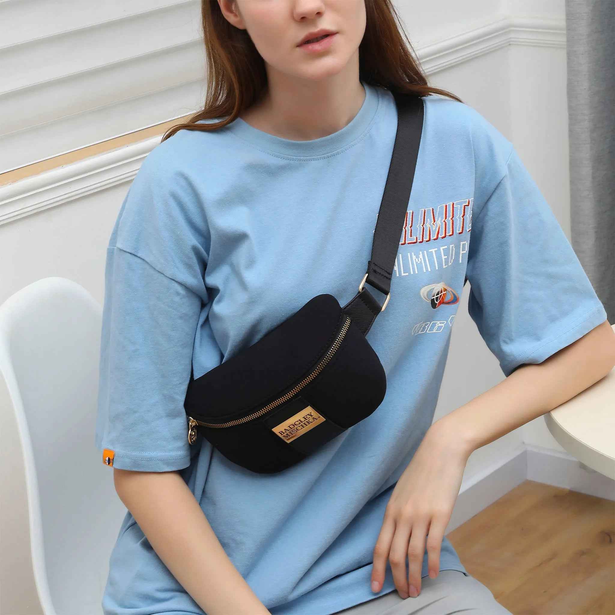 Featuring an adjustable strap and a roomy interior, this belt bag can accommodate all your travel essentials while keeping them safe and secure. The neoprene material adds a sporty touch while the vegan leather gives it a classic look, making it the perfect fusion of functionality and style.