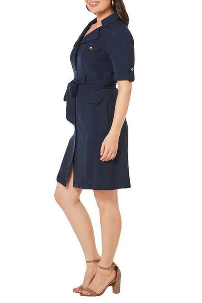 Featuring a classic collared neckline, short sleeves, and a button-down front, this dress channels timeless sophistication with a modern twist. The belt hoop tie waist cinches the silhouette for a flattering fit, while the functional pocket adds practical ease to your ensemble. Crafted from a soft and stretchy rayon blend (75% Polyester, 20% Rayon, 5% Spandex), it offers breathable all-day wear and is machine washable for effortless care.