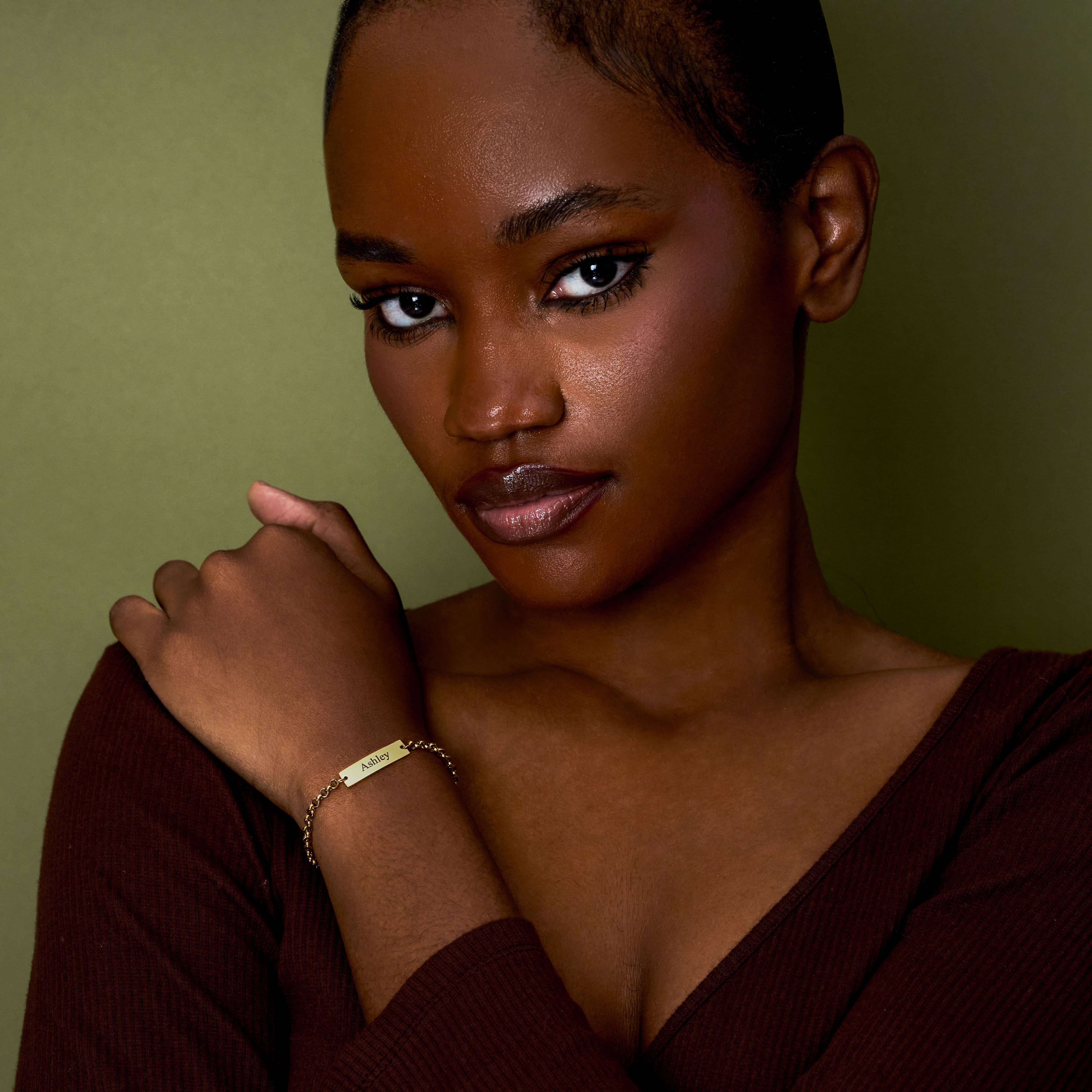 Upgrade your style with the Signature Link Bar Bracelet, featuring an engravable center bar for personal touches. High-quality link chains add sophistication, and its adjustable clasp ensures a perfect fit.