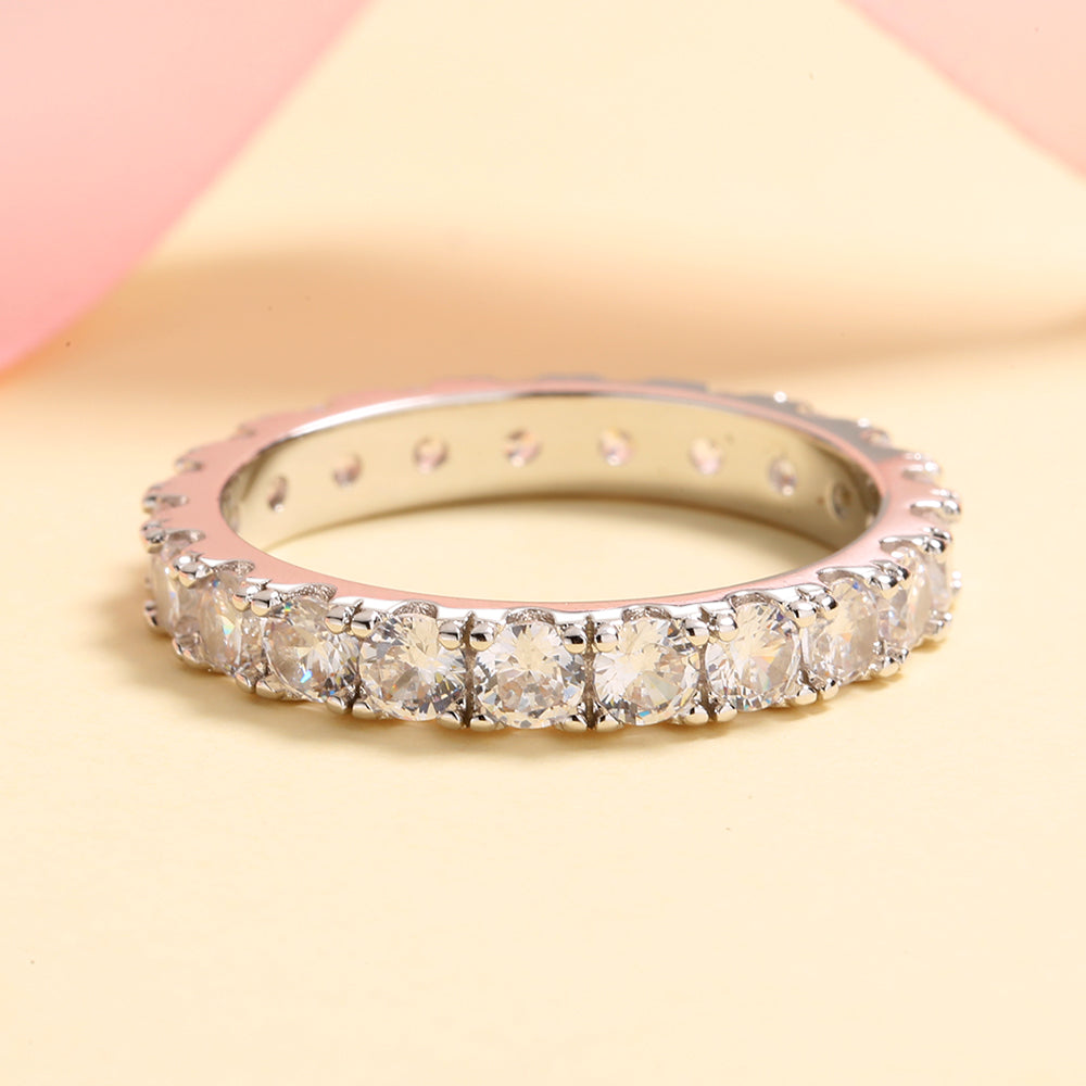 This Silvertone Eternity Ring is the perfect choice for anyone looking for a timeless and versatile accessory. It can be worn on its own for a simple and understated look, or stacked with other rings for a more dramatic effect. It also makes a wonderful gift for a loved one, whether for a birthday, anniversary, or any other special occasion. With its timeless design and high-quality materials, this ring is sure to become a treasured part of anyone's jewelry collection.