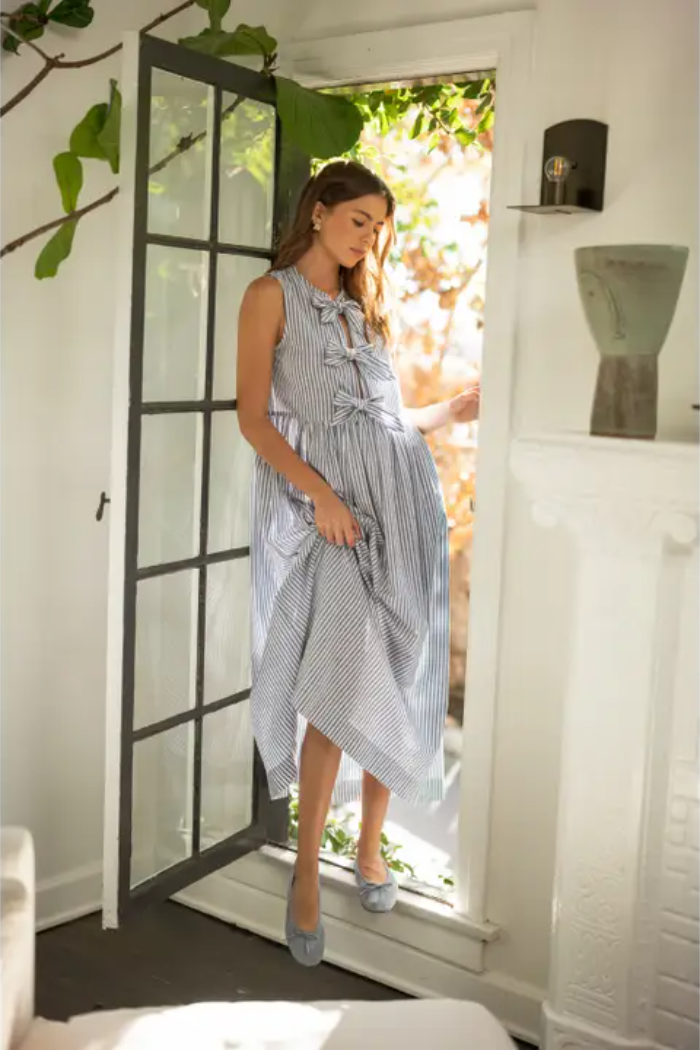 This NEW Stripe Fabric Dress is a Staff favorite! Featuring a Bow Tie Detail along the front, Its a perfect dress for Spring and Summer! Size & Fit Model is wearing size S