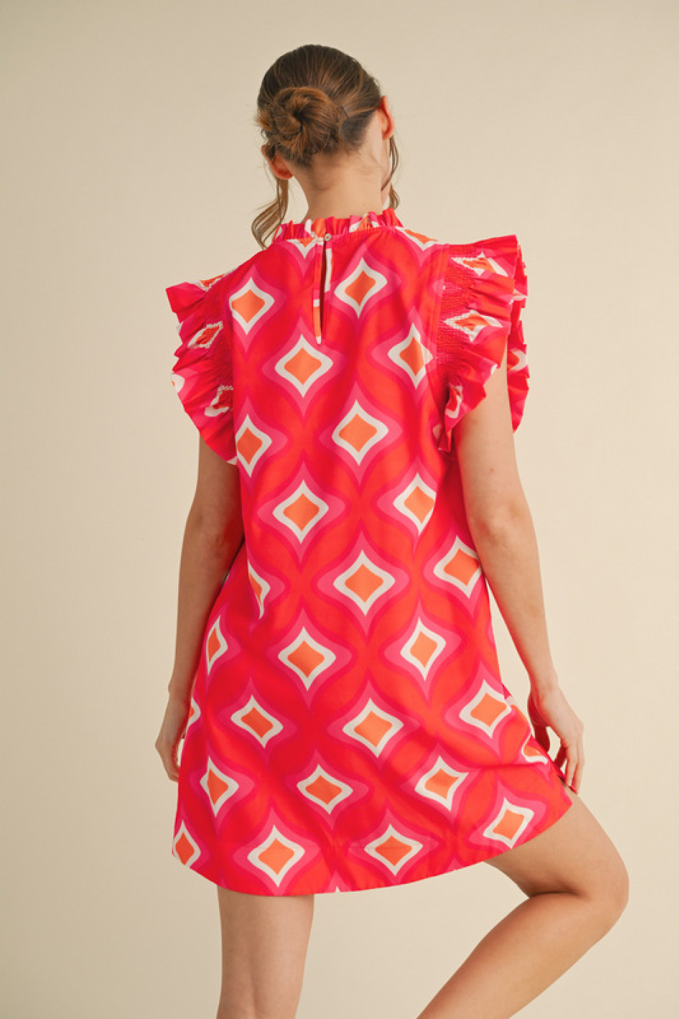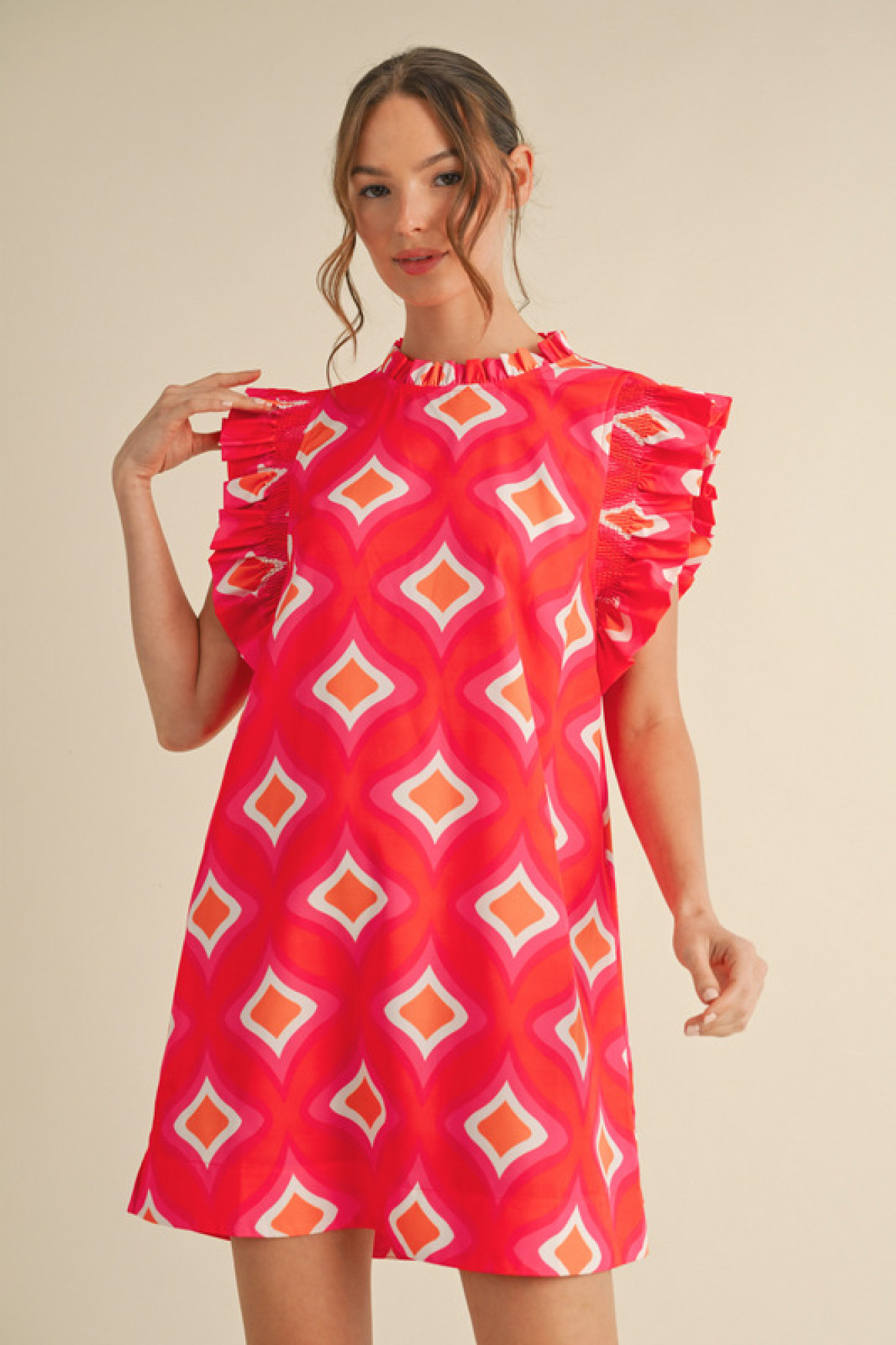 Sweet Pea Era Dress – Vintage-Inspired Printed Dress with Frill Neckline & Ruffle Sleeves Step into timeless charm with The Sweet Pea Era Dress, a vintage-inspired printed dress designed with delicate frill accents and romantic touches. Featuring a mock neckline with soft frill detailing and smocked ruffle cap sleeves, this dress blends nostalgic elegance with everyday ease. Crafted from lightweight, non-sheer woven fabric, it’s as breathable as it is beautiful—perfect for garden parties, picnics, or strolling through antique markets. The subtle print and soft silhouette make this piece a wardrobe favorite for lovers of classic femininity and vintage flair. Details: Vintage-inspired printed dress Frill mock neckline for romantic charm Smocked ruffle cap sleeves Lightweight, non-sheer woven fabric Easy, breathable fit for warm weather wear Perfect for: garden brunches, vintage-themed events, countryside getaways, and sweet summer days.