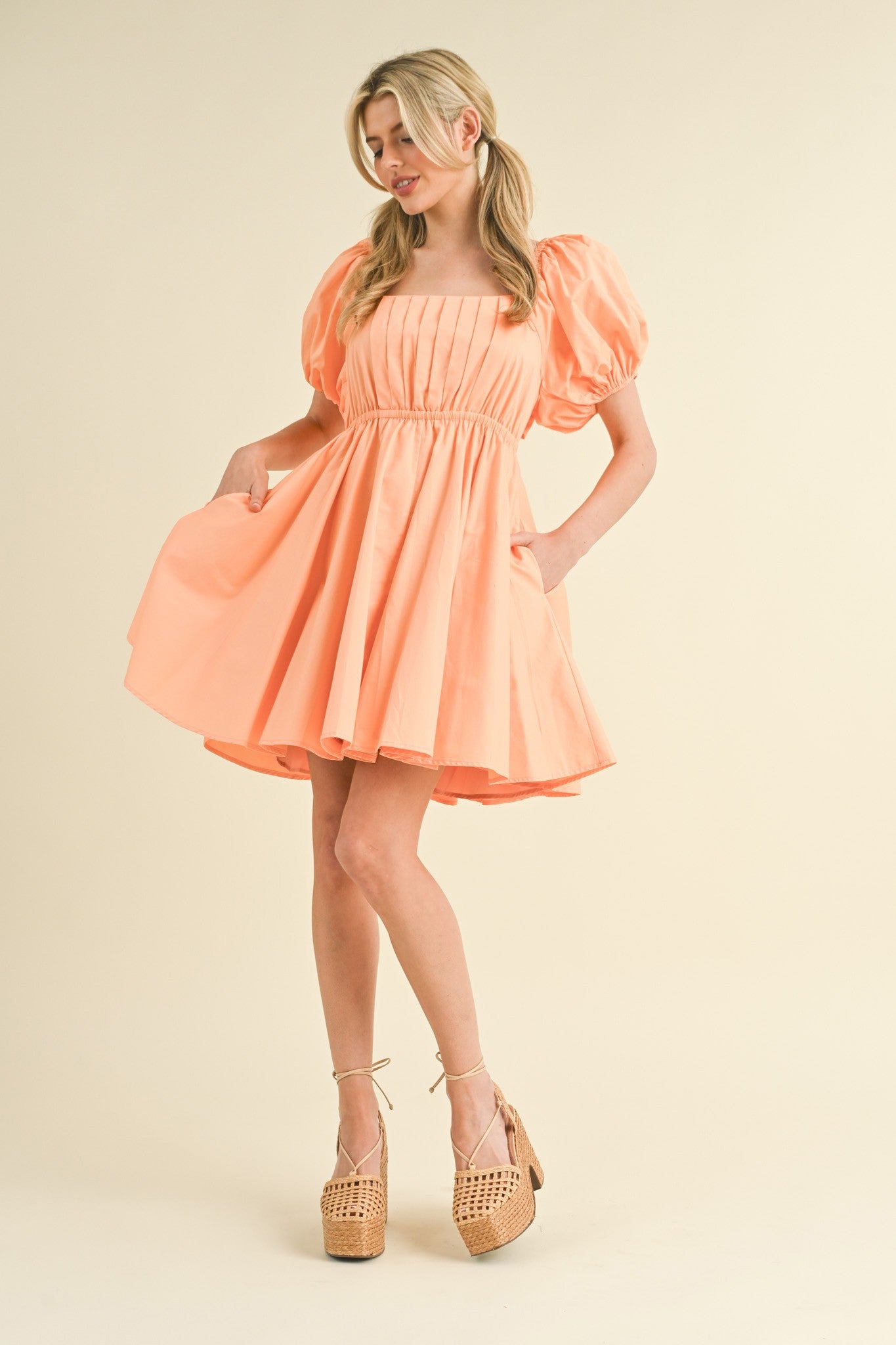 Ready to make a statement this season? Say hello to our new Pleated Tie-Back Mini Dress, designed for those who love blending timeless elegance with modern charm. 💃✹ With its flattering Square Neckline and intricate Pleated Detail on the bust, you’re sure to turn heads wherever you go. The Short Puff Sleeves with Elastic Cuffs offer just the right amount of volume, giving your look that added touch of sophistication. The High Elastic Waistband ensures comfort while accentuating your waistline beautifully. But let’s not forget the stunning Bow Tying Detail on the back – it’s all about those breathtaking finishing touches! 🎀 Feel fabulous as you flaunt that Flare Mini Hem that dances with every step you take. And guess what? It has Pockets! Yes, functional pockets because style should never compromise practicality. Plus, the Tulle Lining adds an extra layer of luxury and flair. For reference, the model is 5'7" with measurements 32-24-34 and she wears a size S. This dress fits like a dream! So why wait? Elevate your wardrobe game today and embrace your inner fashionista in this must-have piece! 🌟👗