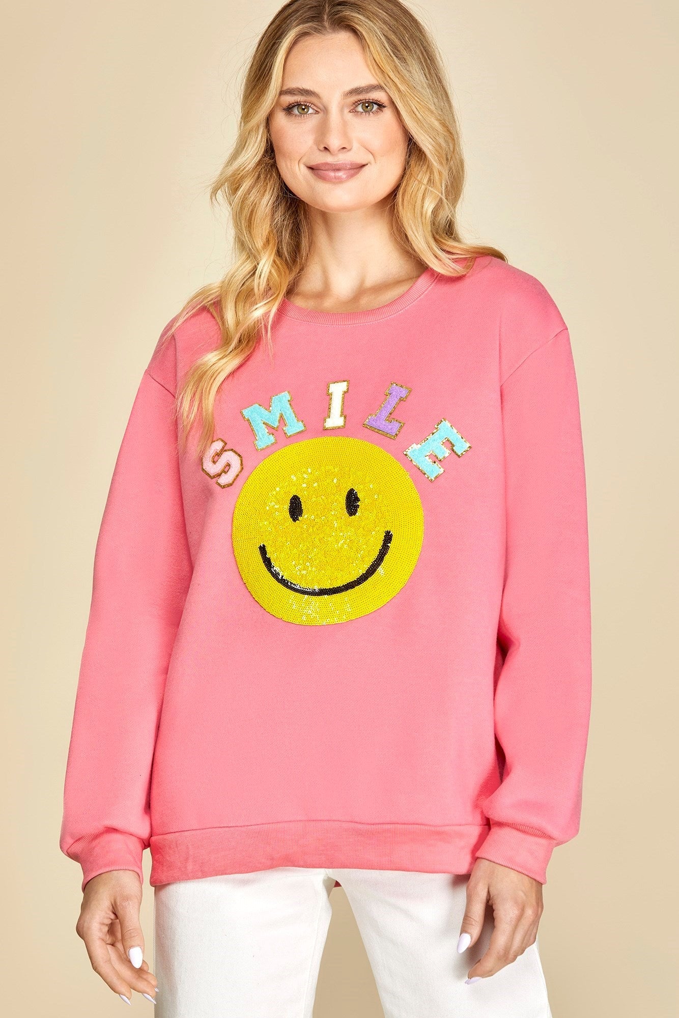 LONG SLEEVE SMILE PATCH SWEATSHIRT