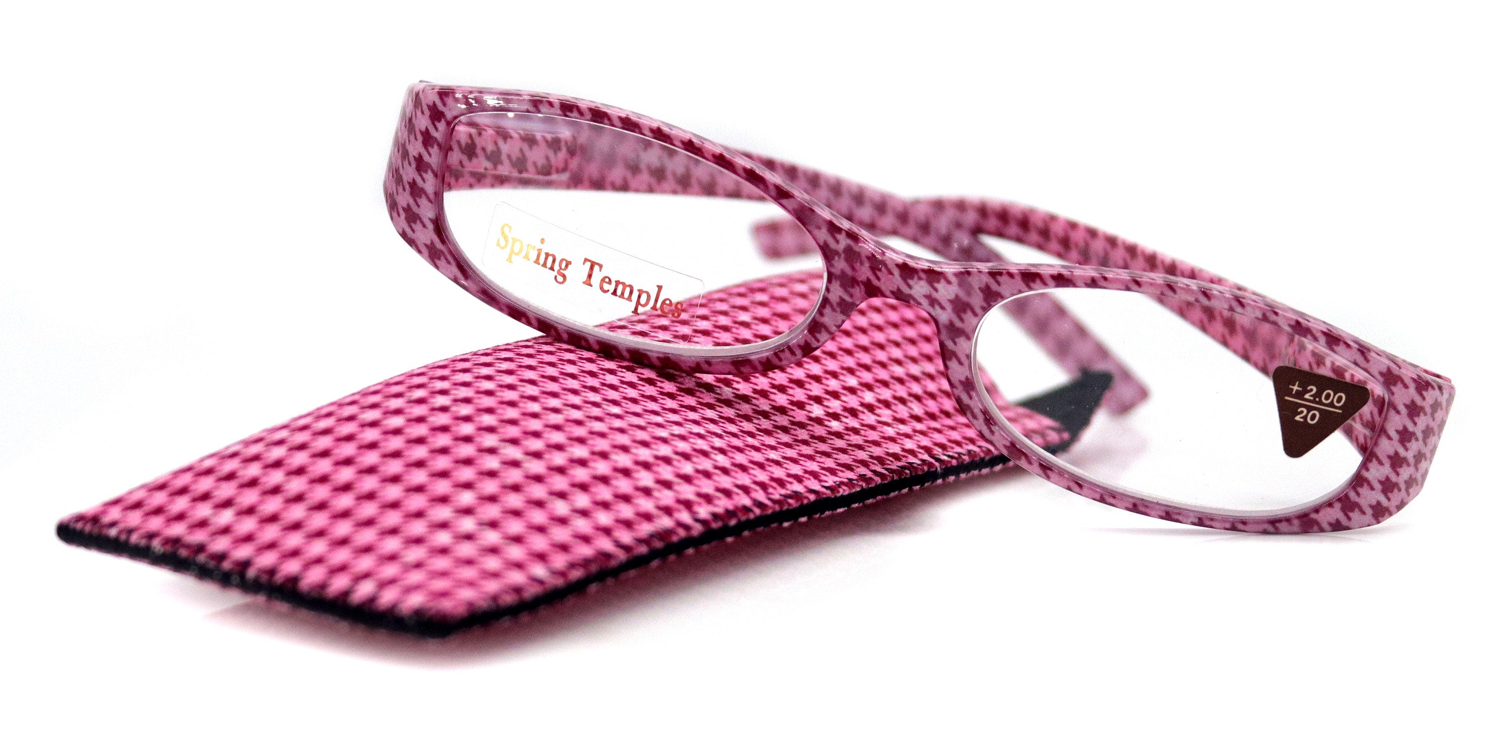 The Scottish, (Premium) Reading Glasses, High End Readers (Pink) Hound Tooth +1.25.. +3 Magnifying Eyeglasses. Houndstooth NY Fifth Avenue