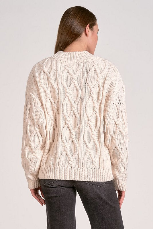 The Tristian sweater embraces timeless warmth. Its crewneck cable knit design, cuffed sleeves, and ribbed neckline offer classic comfort for chilly days.