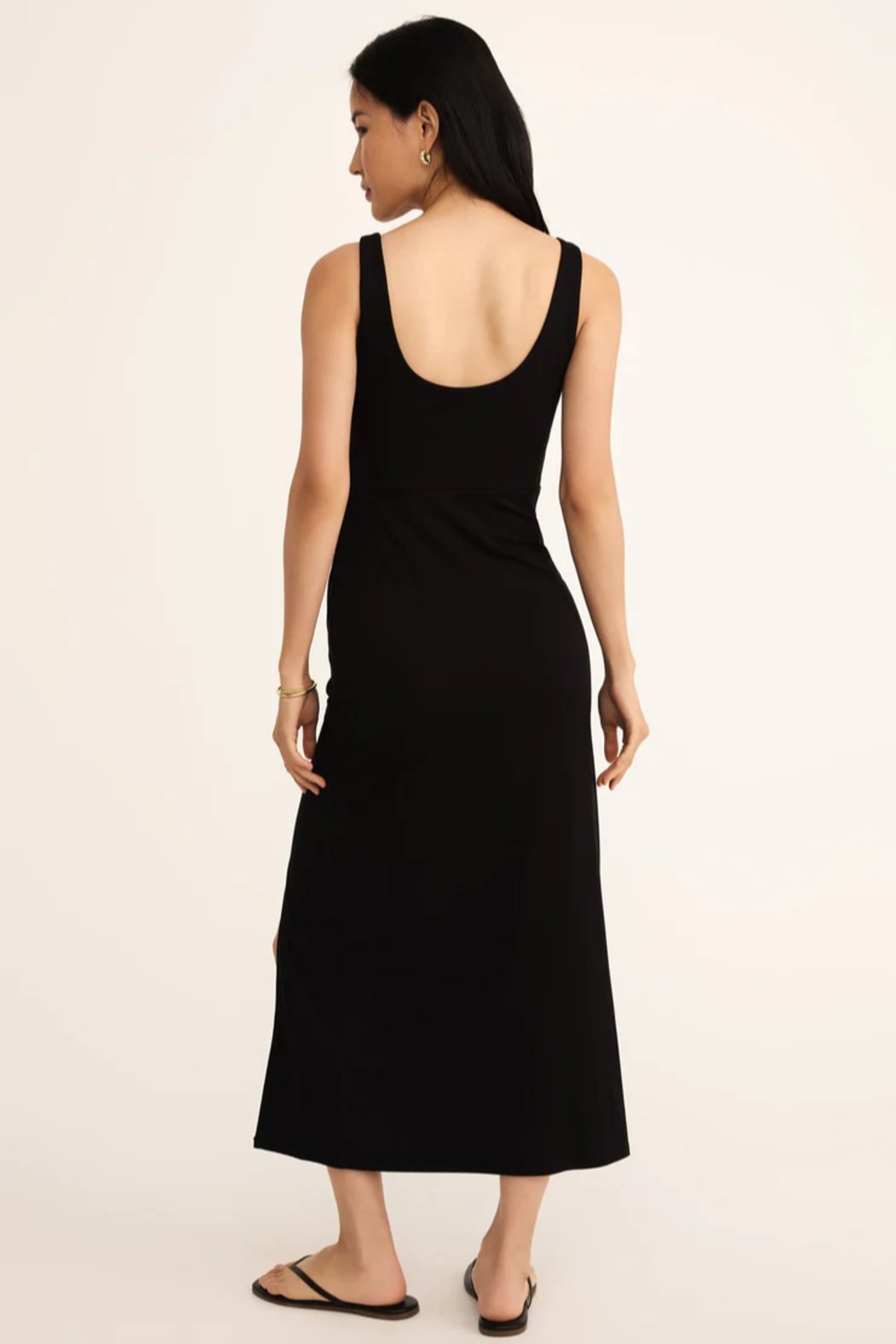 Flattering and fitted, this midi dress features a wide, bra-friendly strap and a flirty mid-thigh slit. Made from stretchy rayon, it hugs in all the right places.