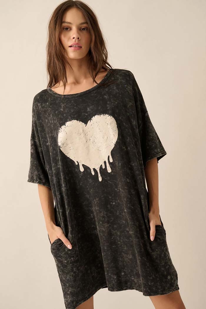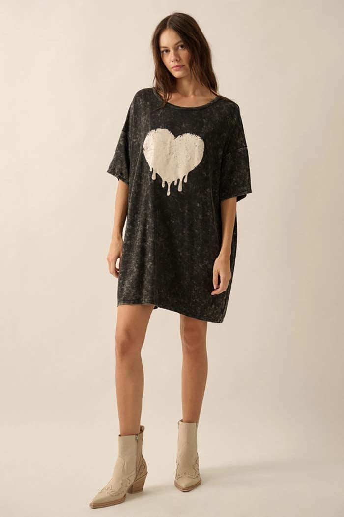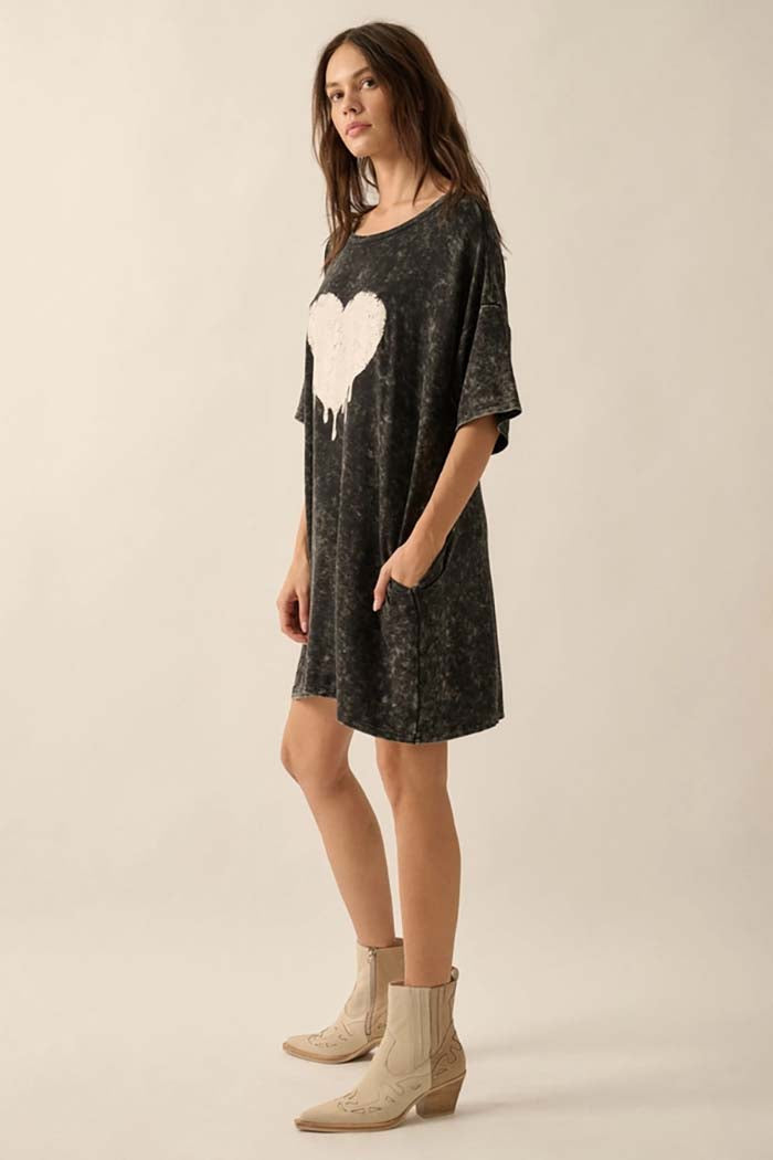 Vintage Wash Melting Heart Valentine's Tee Mini Dress