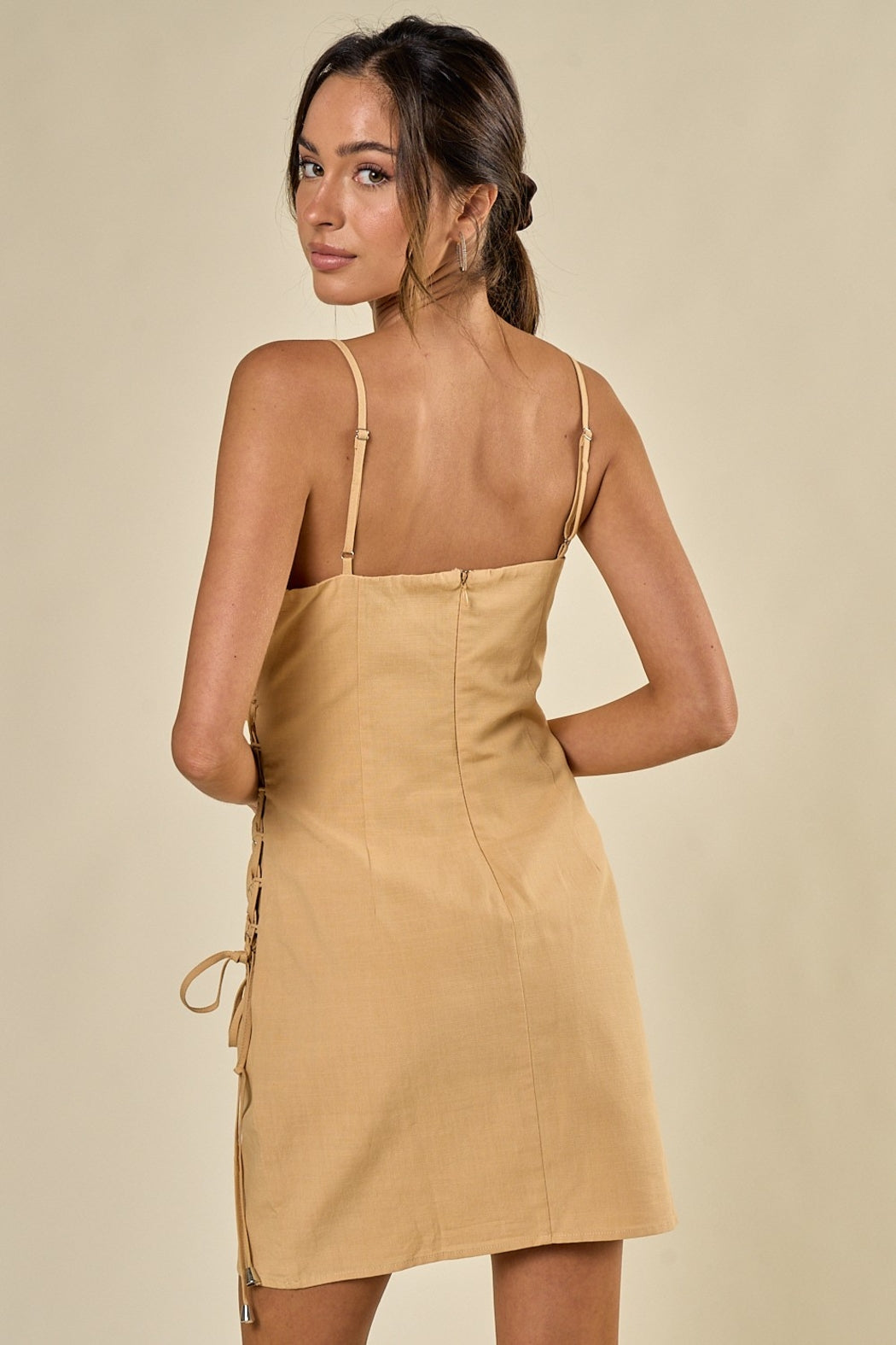 Lace up wrap front mini dress - sleeveless - bodycon - adjustable straps - zipper back - true to size