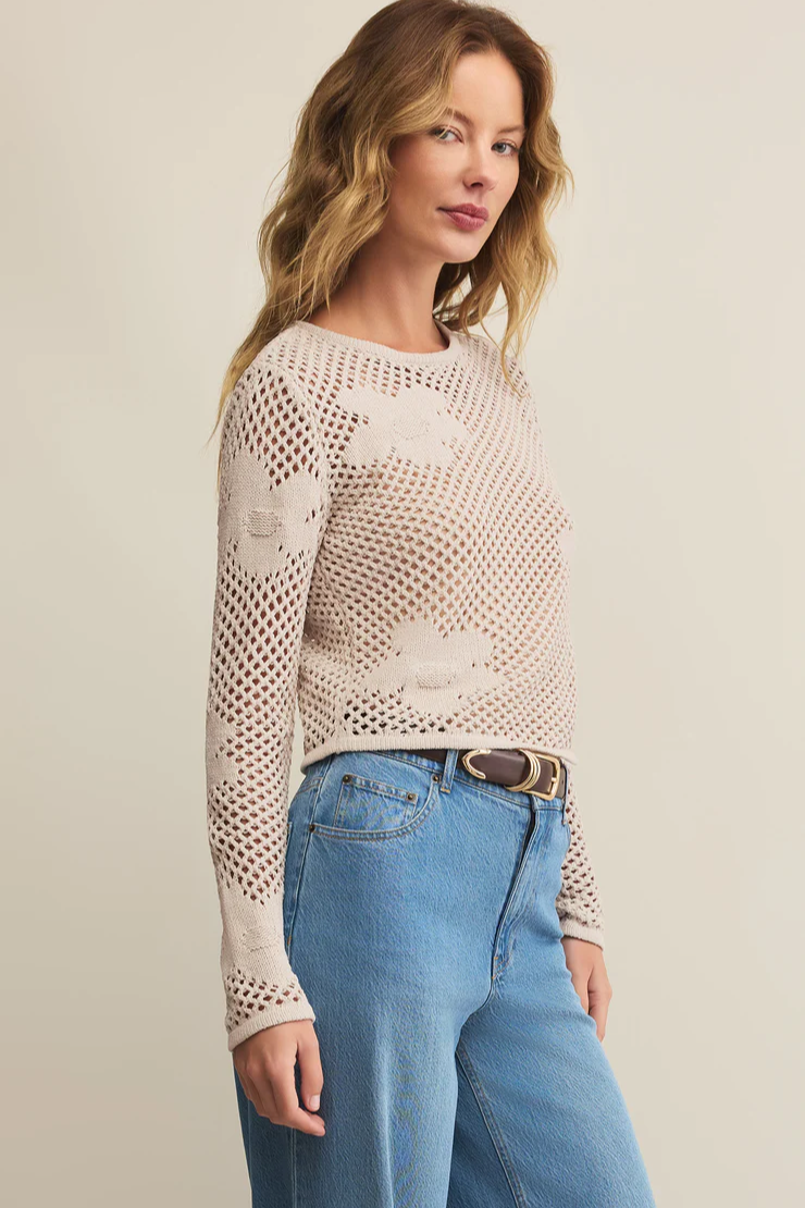 This sweater is ready to be layered over your favorite tank or bralette. This fun top features open mesh netting with a feminine floral design for a semi-sheer look and lightweight feel.