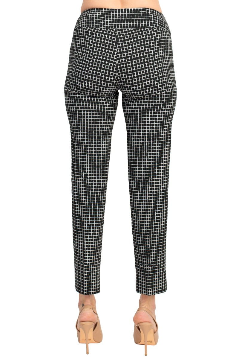 Elevate your wardrobe with the Zac & Rachel Black White Irregular Mini Square Print Fitted Pants