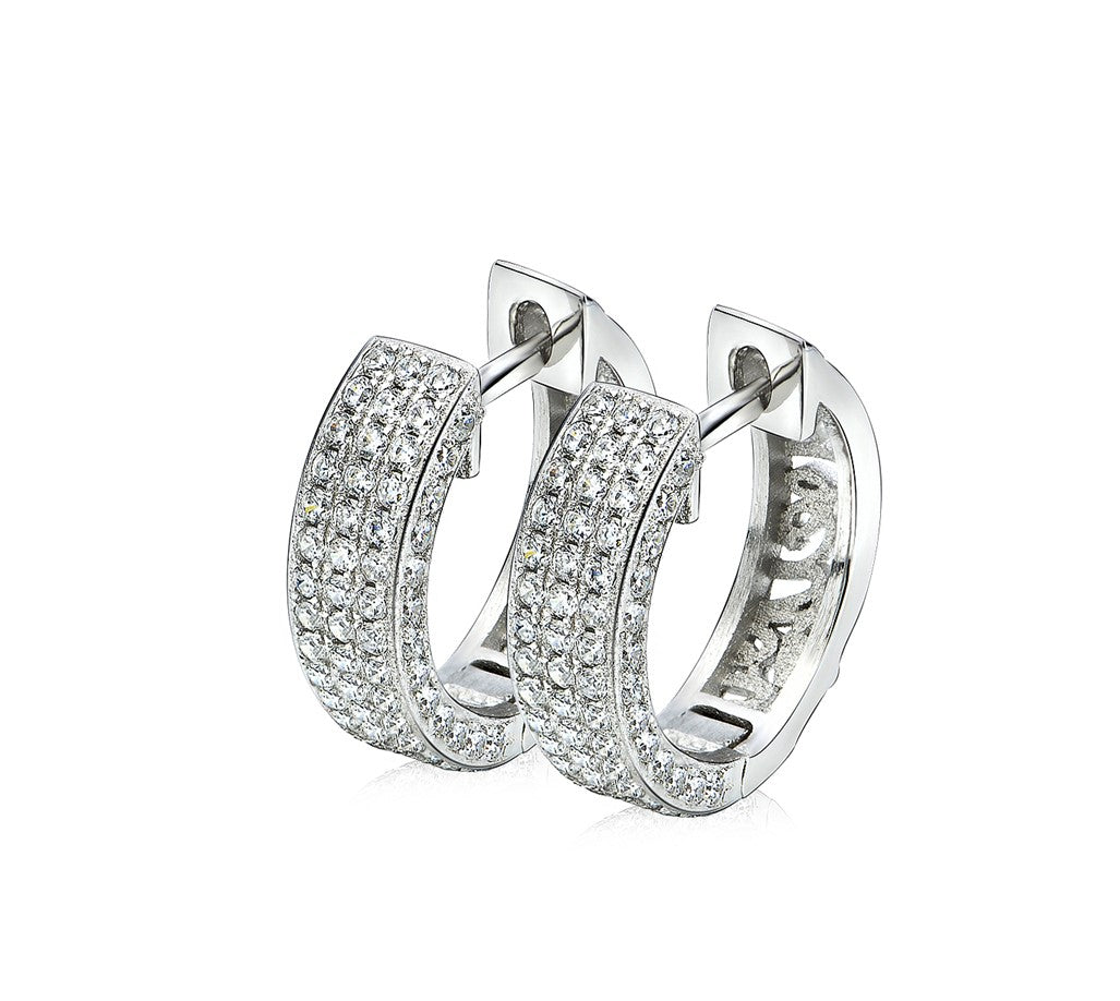 Amy and Annette 18K White Gold Plated Pavé Huggie Earrings with Crystals