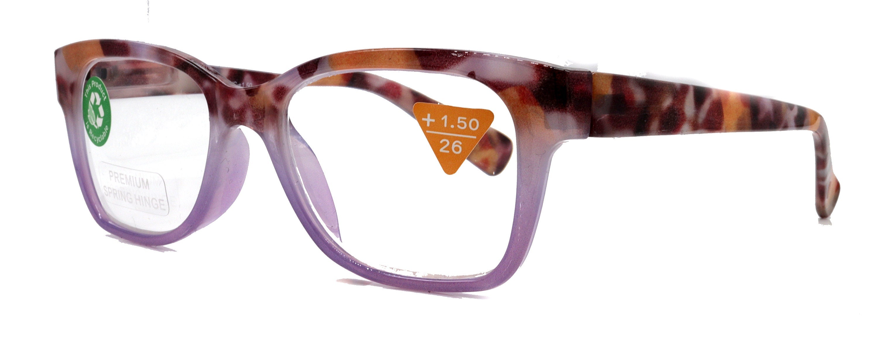 Aya, (Premium) Reading Glasses, High End Fashion Reader,+1.25 to +4 Magnifiers, (Purple n Brown Tortoise) Square Frame. NY Fifth Avenue.