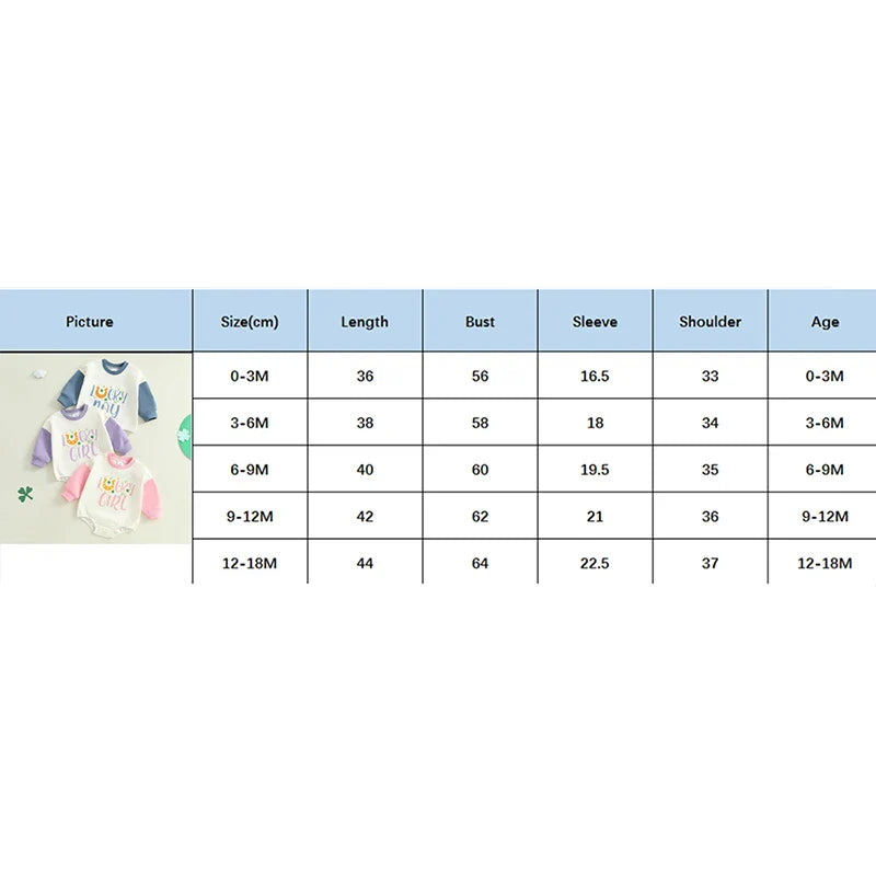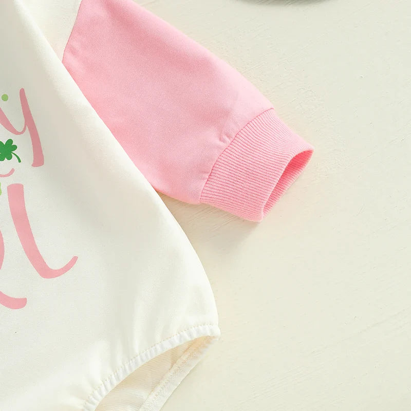 Baby Girls Lucky Girl Spring St. Patrick's Day Bubble Romper Long Sleeve Crewneck Shamrock Horseshoe Print Bodysuit