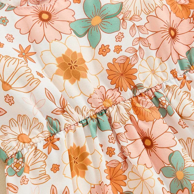 Baby Girls Summer Romper Flower/Butterfly Print Bow Tie Strap Tank Top Sleeveless Round Neck Jumpsuit