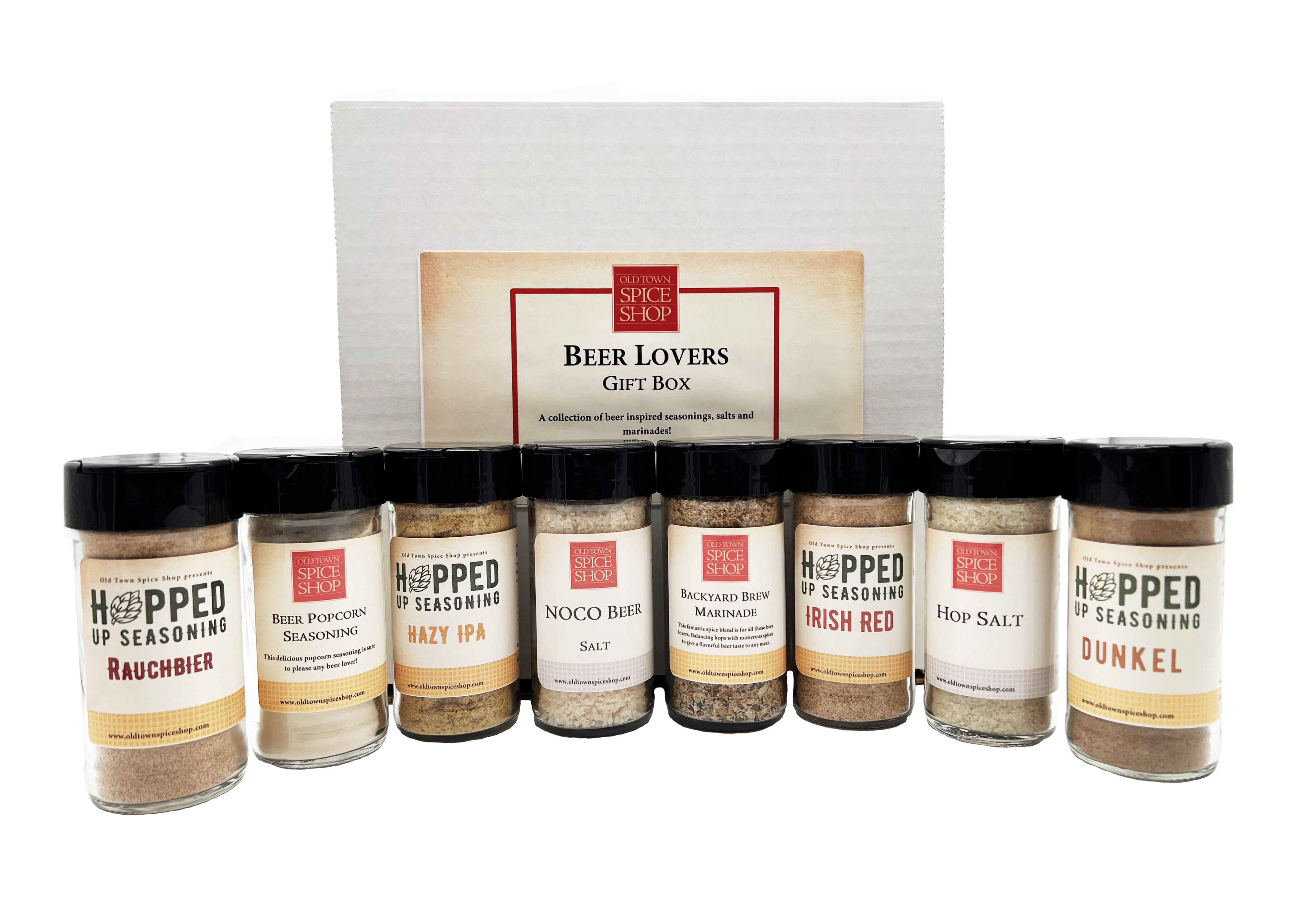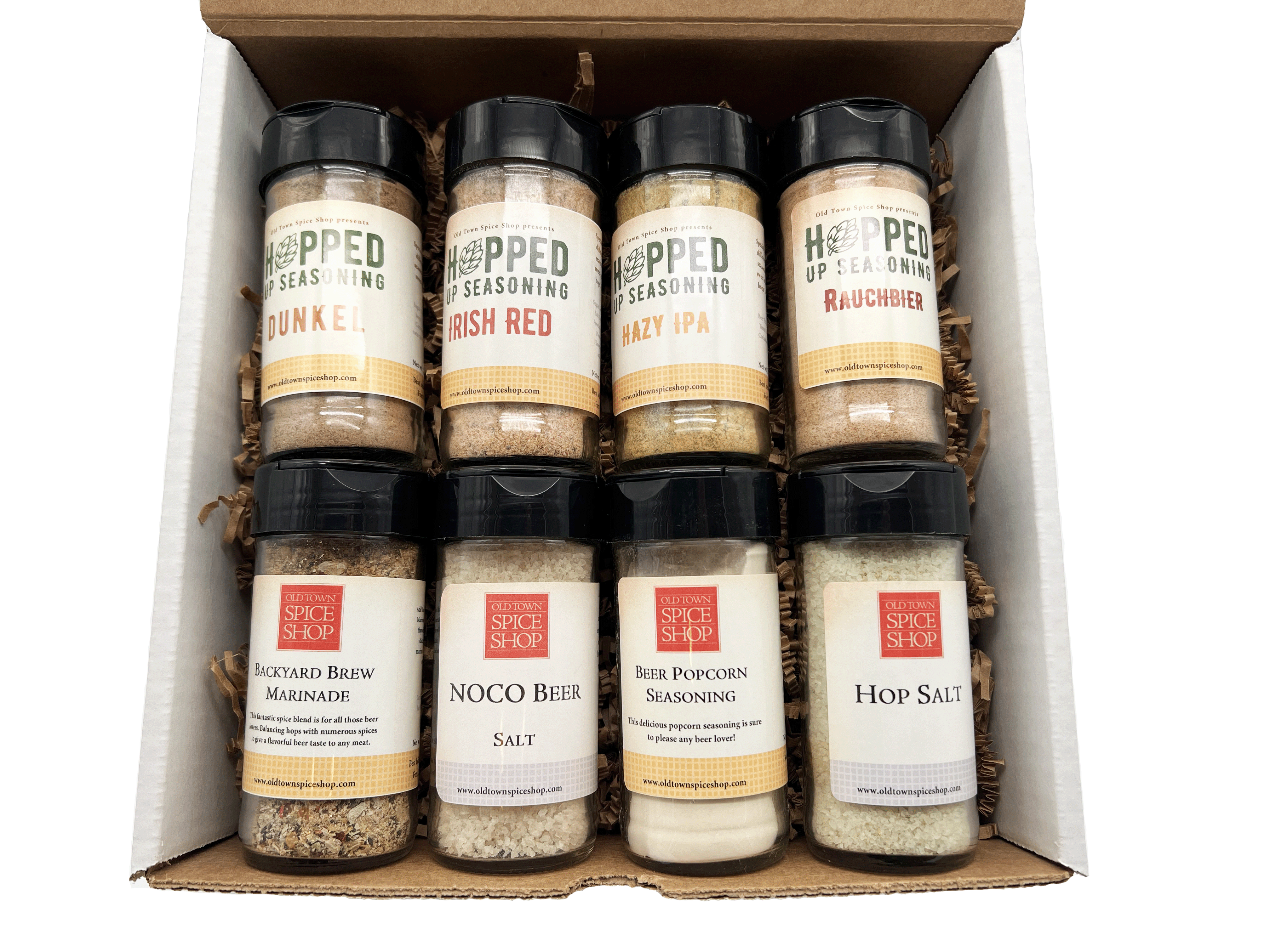 2.5 oz Jar Dunkel, 2.3 oz Jar Irish Red, 2.1 oz Jar Hazy IPA, 2.3 oz Jar Rauchbier, 2 oz Jar Backyard Brew, 2.6 oz Jar Hop Salt, 1.8 oz Jar Beer Popcorn Seasoning, 3.5 oz Jar NOCO Beer Salt