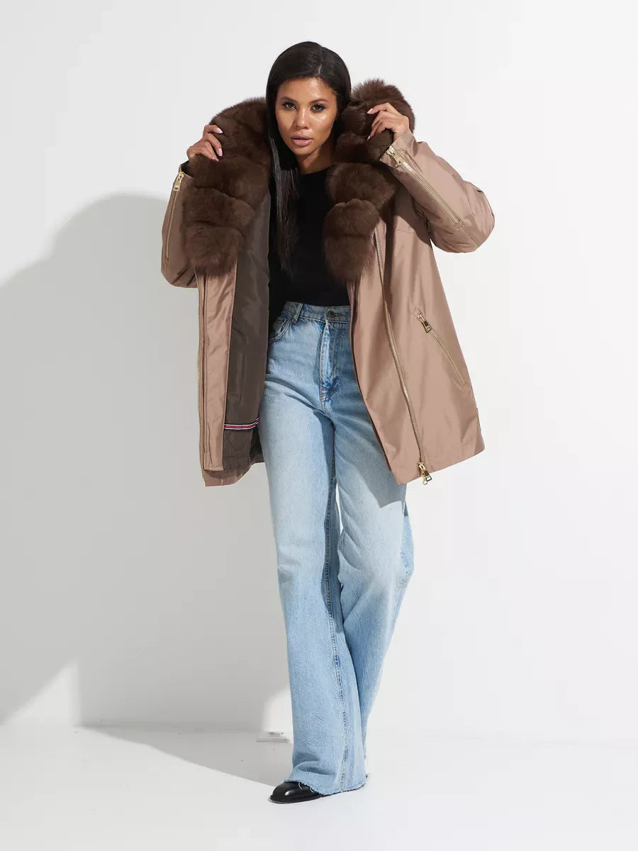 Alaska's warmest parka. With rich plush Polar Fox fur trim outside, genuine Rex rabbit fur insulation inside and additional real fur insulation inside the hood too, this parka will be your best companion for coldest outdoor activities. Made of high-quality water-repellent fabric and finished with genuine rich extra large fur trim parka can effortlessly withstand temperatures up to -30°C