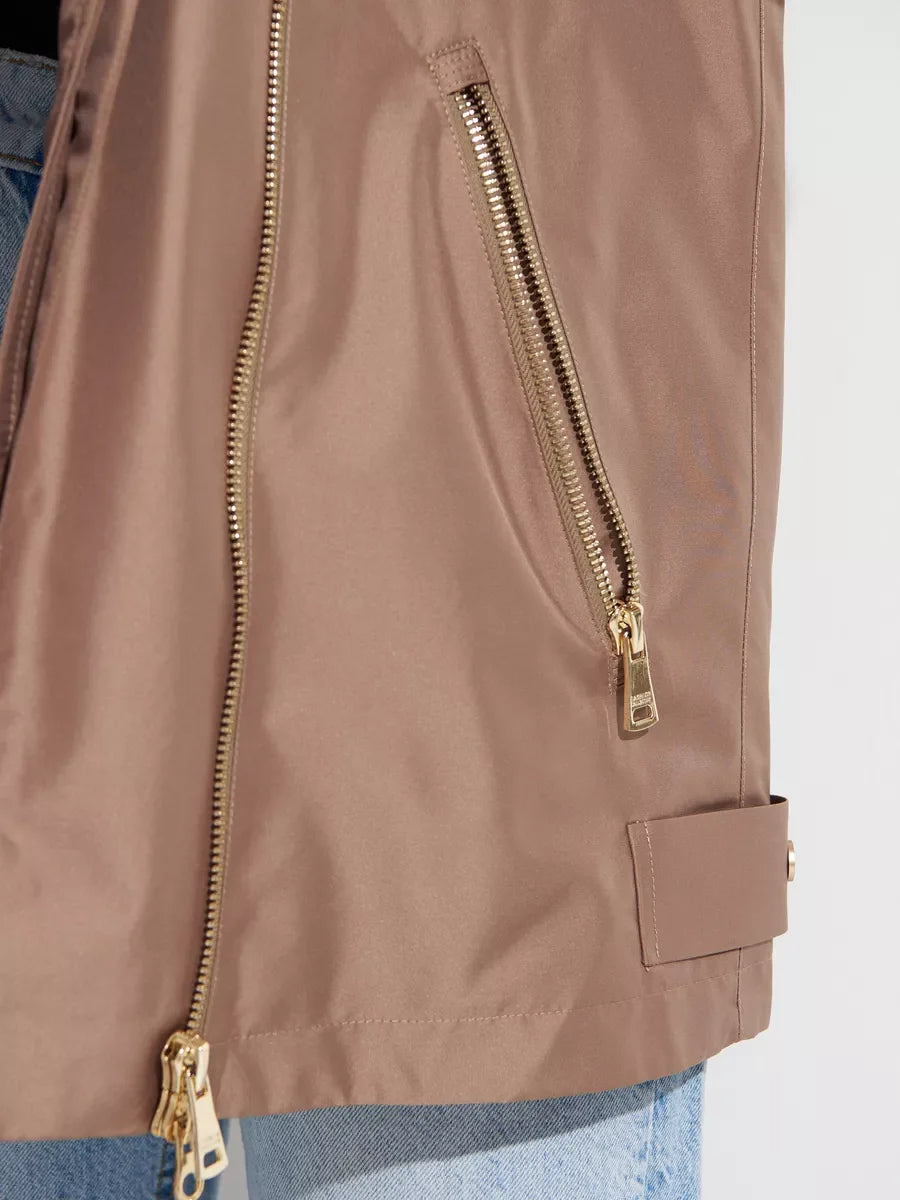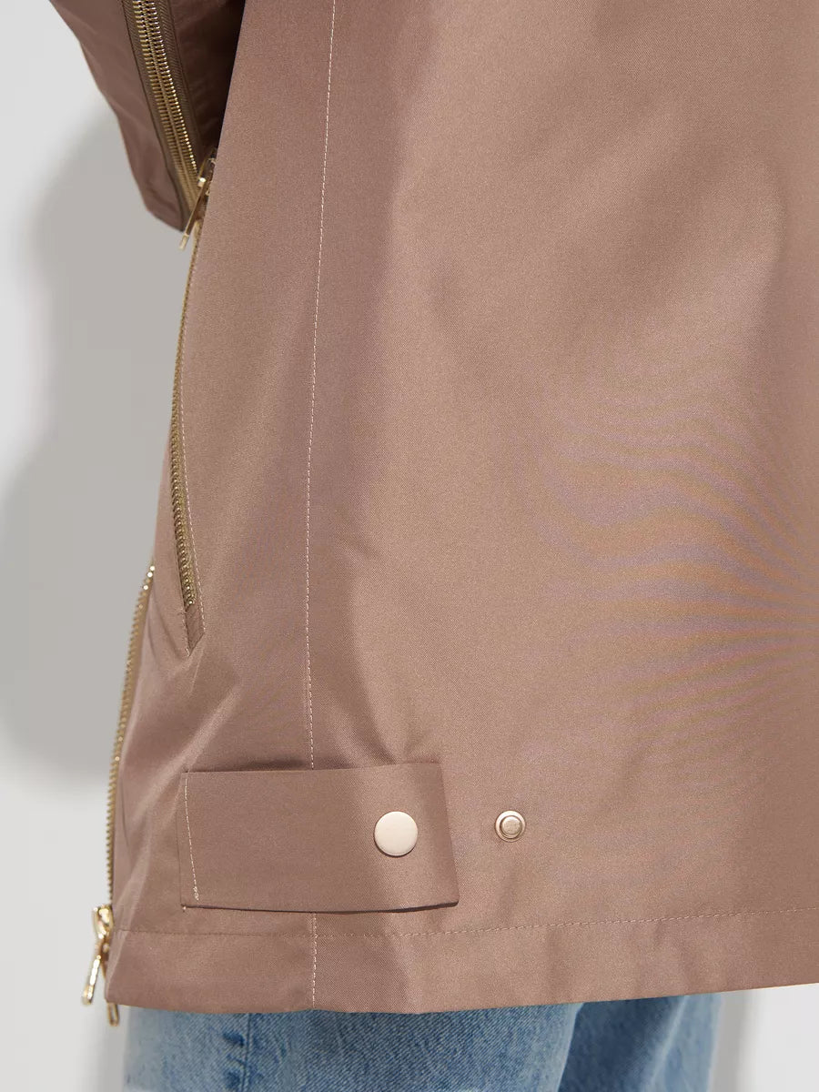 2 in 1 style: fully removable fur and lining (the fur is attached to a lining) turns parka to beautiful light coat that is perfect for mid-season wear spring or autumn.
