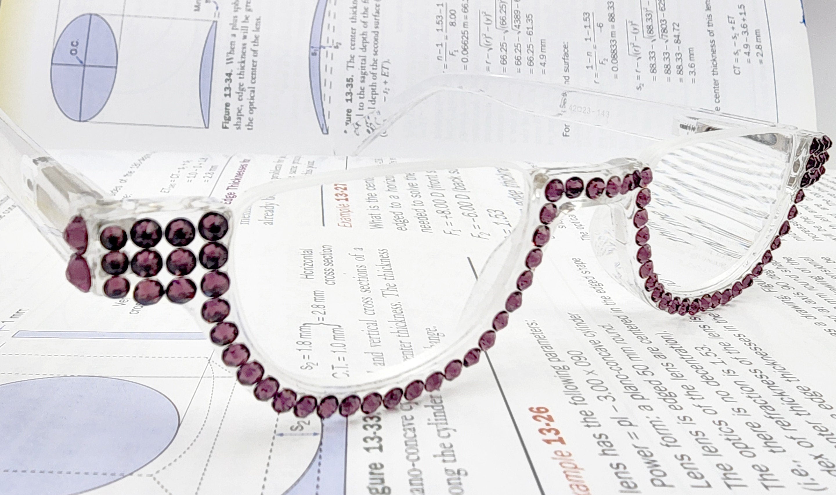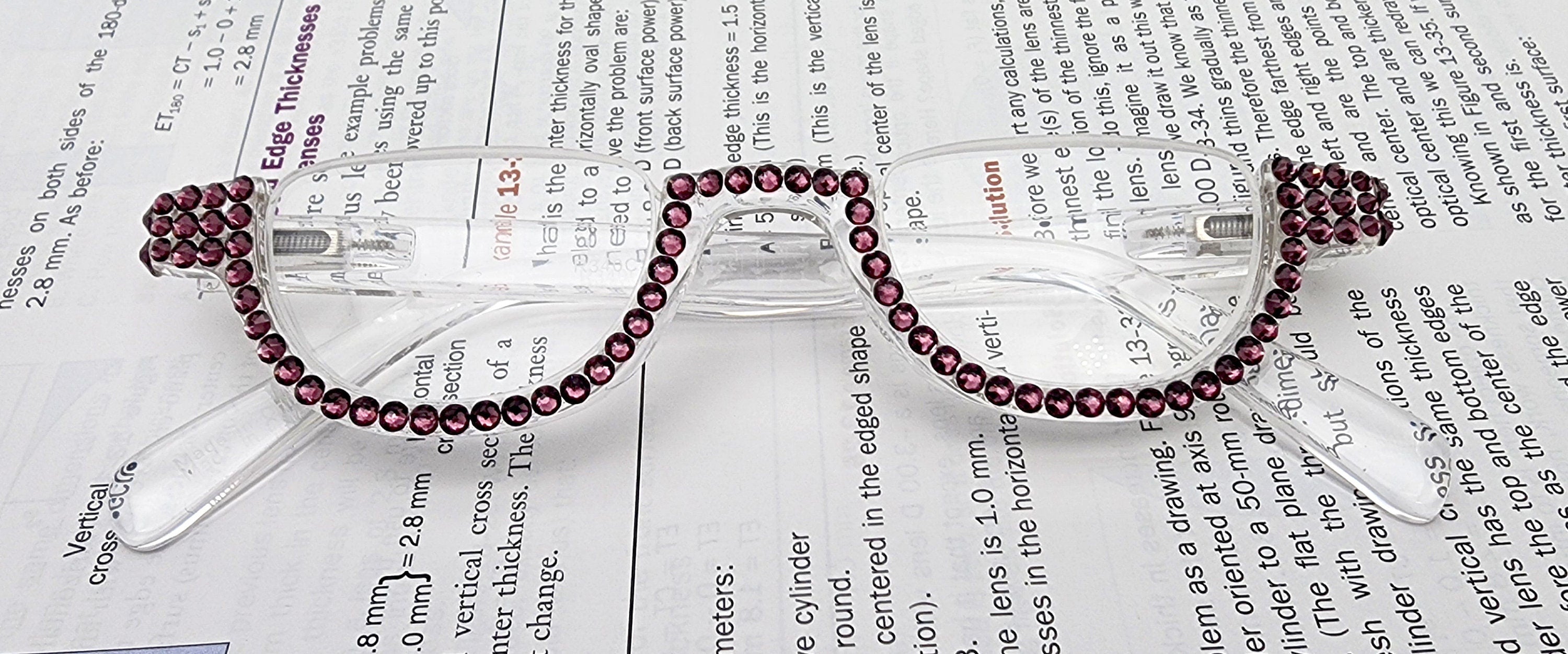Half Moon, (Bling) Reading Glasses For Woman Adorned W (Purple) Genuine European Crystals, (Translucent) Lower Nose Frame, NY Fifth Avenue